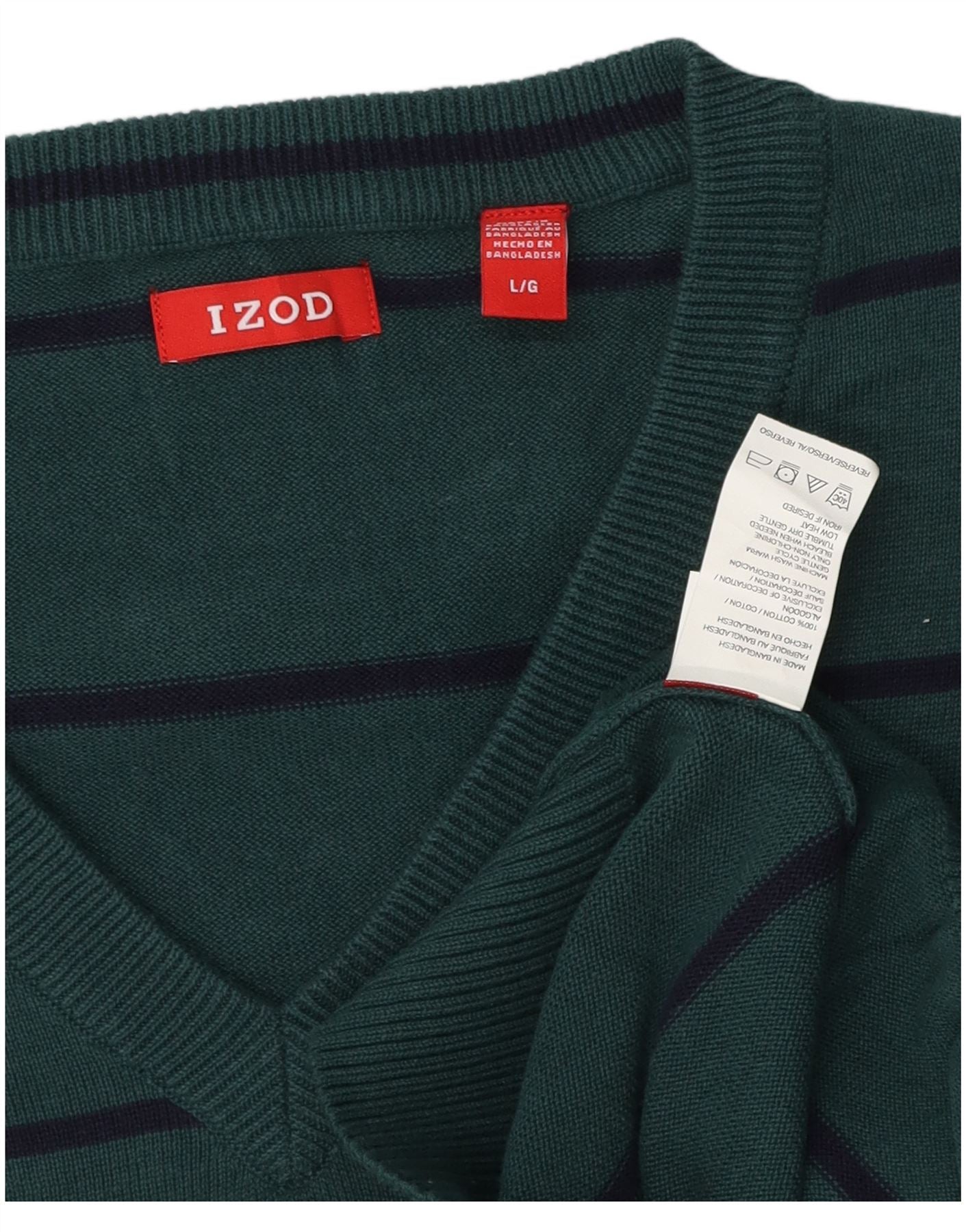 Maglione da uomo con scollo a V IZOD, cotone a righe grandi verdi