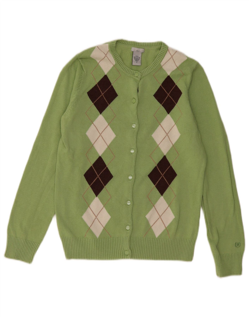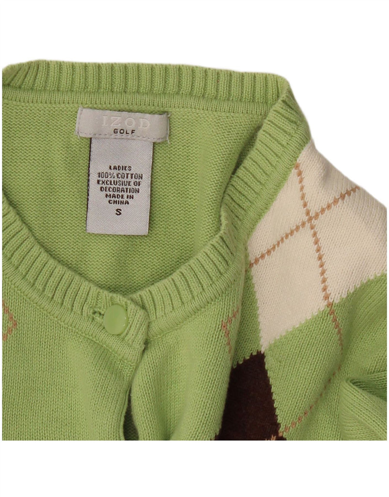 IZOD Womens Golf Cardigan Sweater UK 10 Small Green Argyle/Diamond Cotton