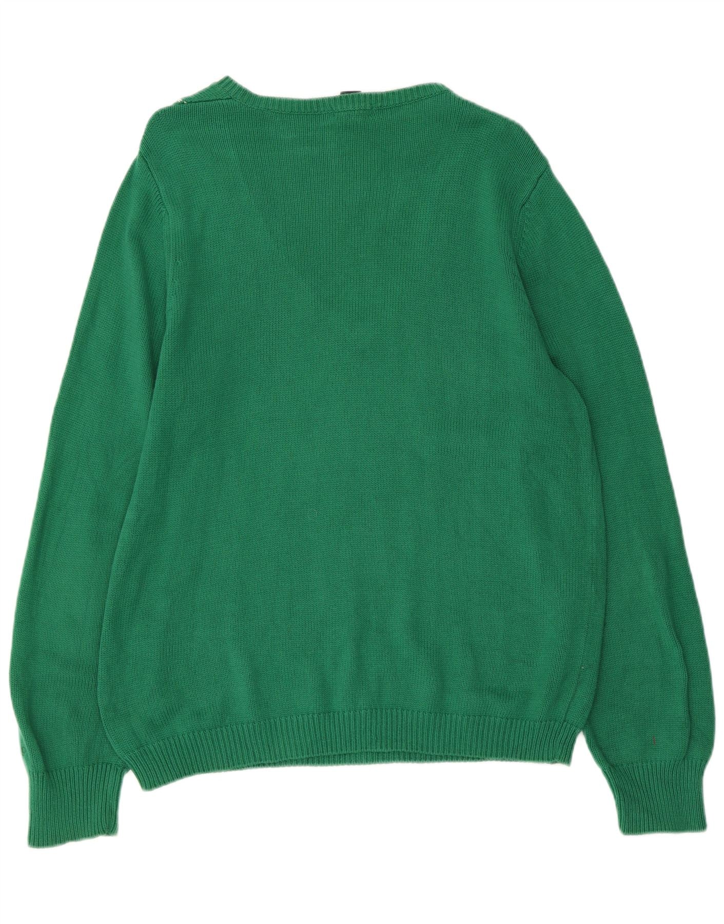 IZOD Womens V-Neck Jumper Sweater UK 16 Large Green Argyle/Diamond Cotton