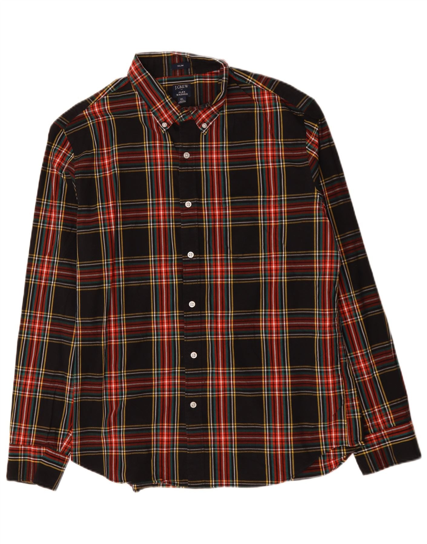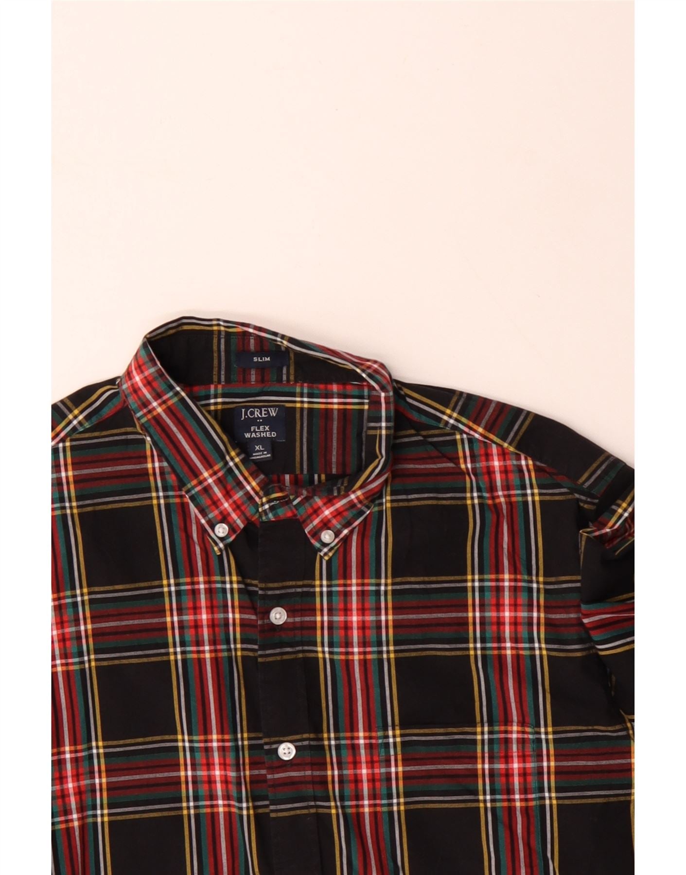 J. CREW Camicia slim fit lavata Flex da uomo XL in cotone a quadri nero