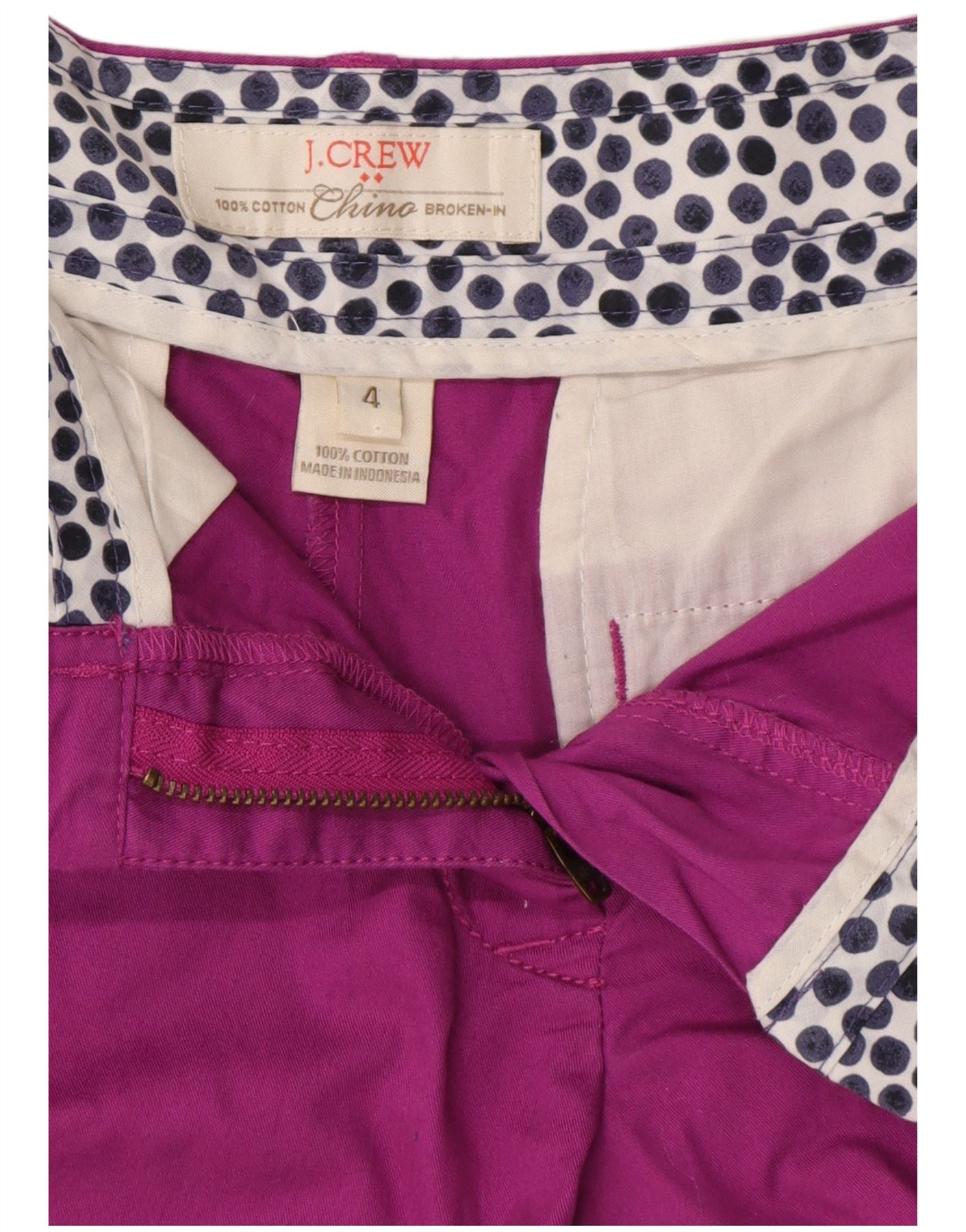 Pantaloncini chino da donna J. CREW US 4 Small W30 cotone viola