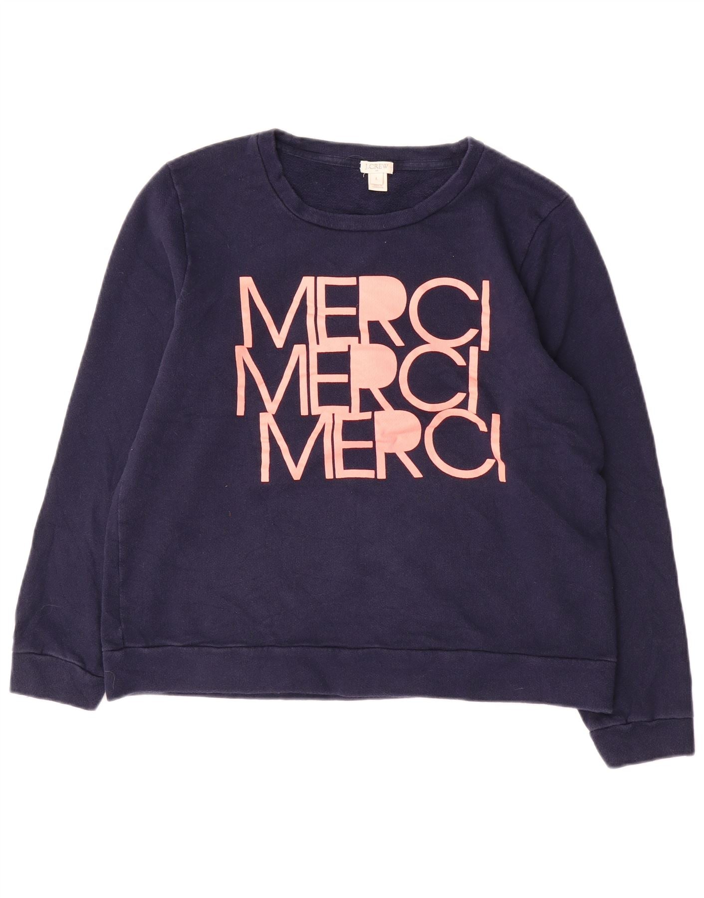 J. CREW Felpa con grafica da donna Maglione UK 16 Large Blu Navy Cotone