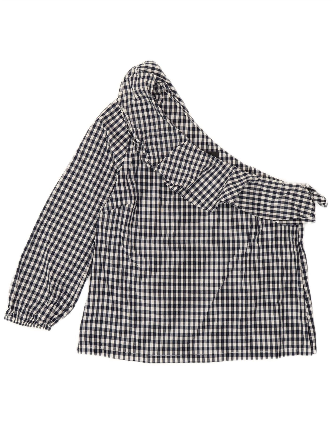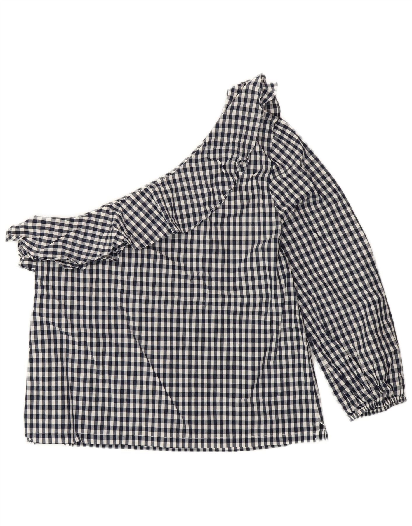 J. CREW Top monospalla da donna US 8 cotone a quadretti blu navy medio