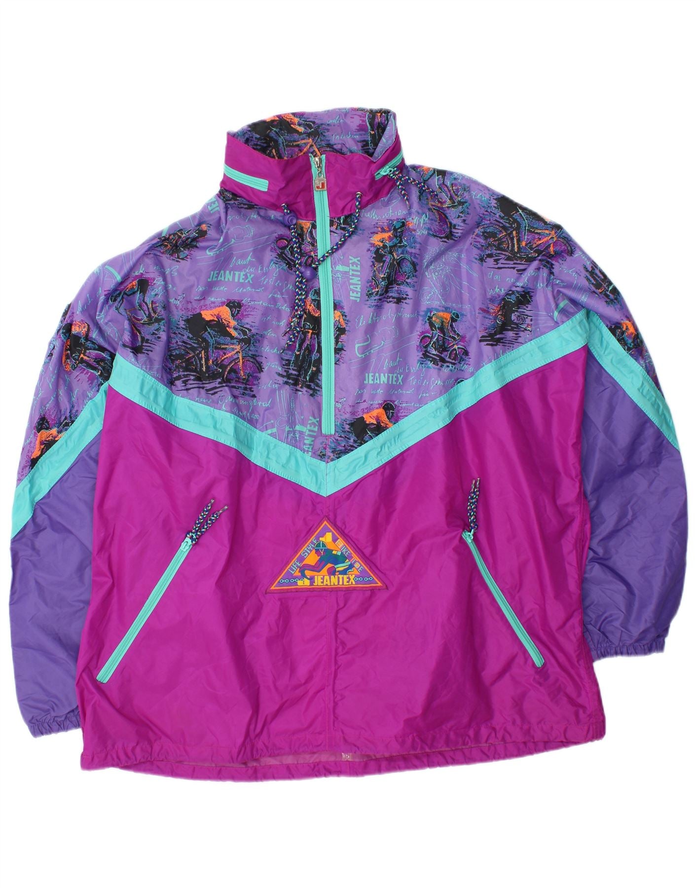 J JEANTEX Giacca antipioggia da uomo con cappuccio pullover UK 44/46 2XL Viola color block