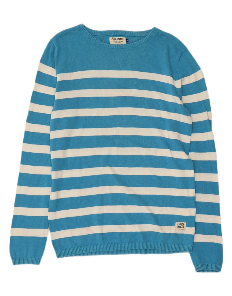 JACK & JONES Maglione da uomo con scollo a barca piccolo in cotone a righe blu