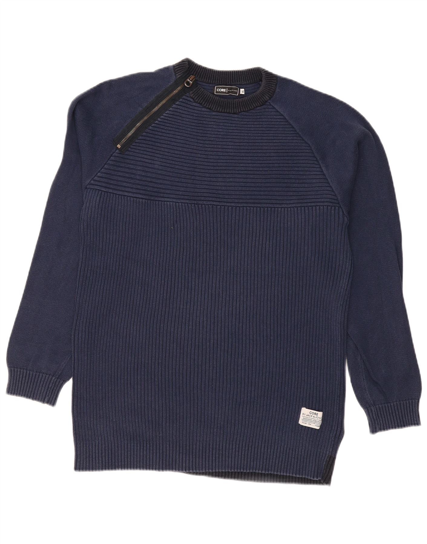 JACK & JONES Maglione da uomo Core con zip e collo XL a blocchi di colore blu navy