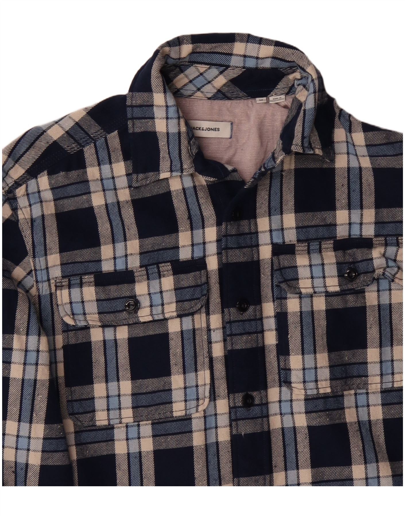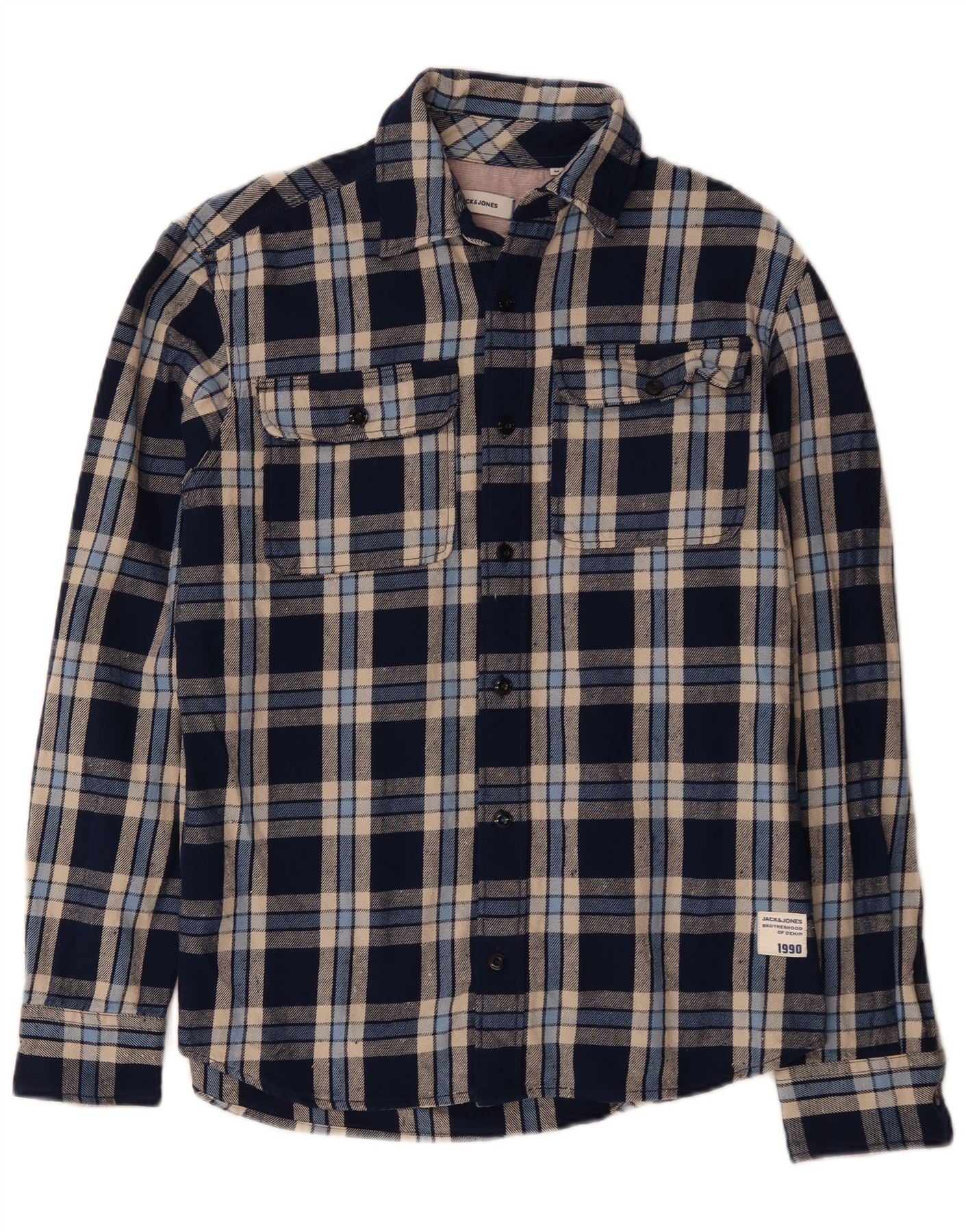JACK & JONES Camicia da uomo in flanella di cotone a quadri blu navy medio