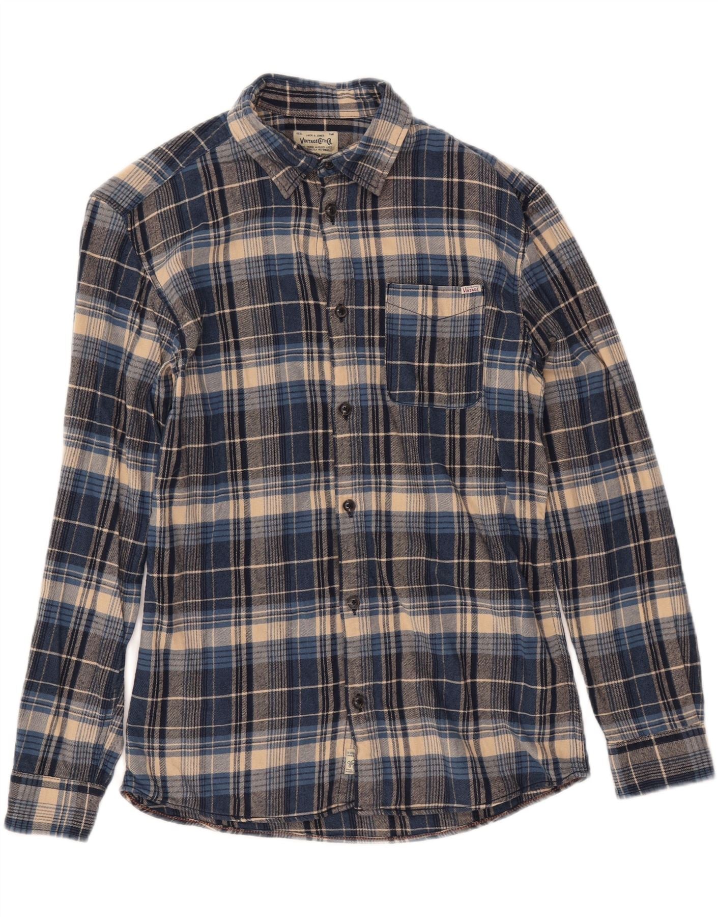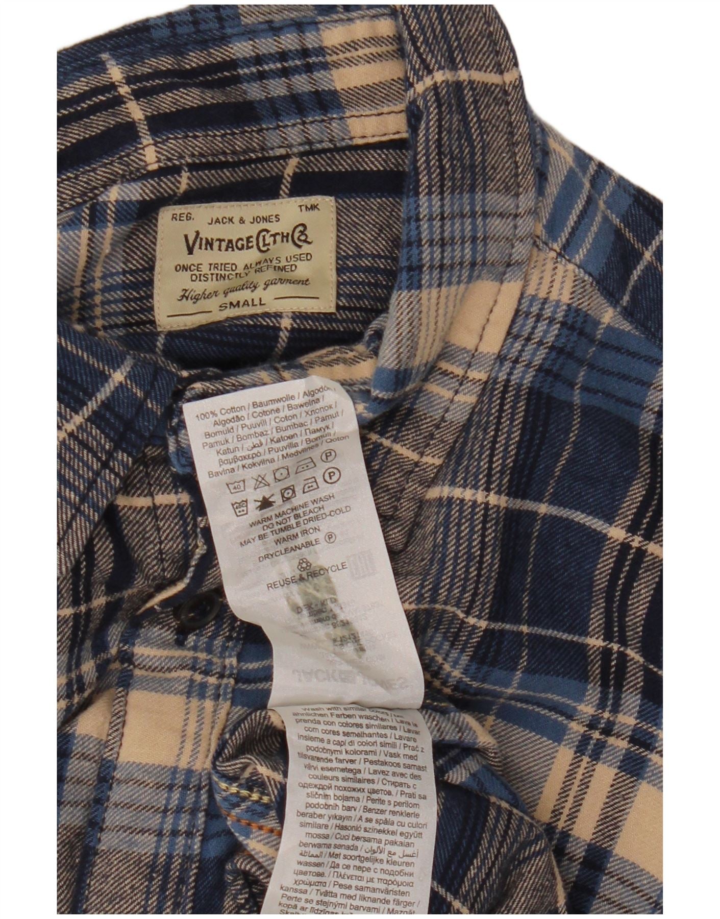 JACK & JONES Camicia da uomo in flanella di cotone a quadri piccoli blu
