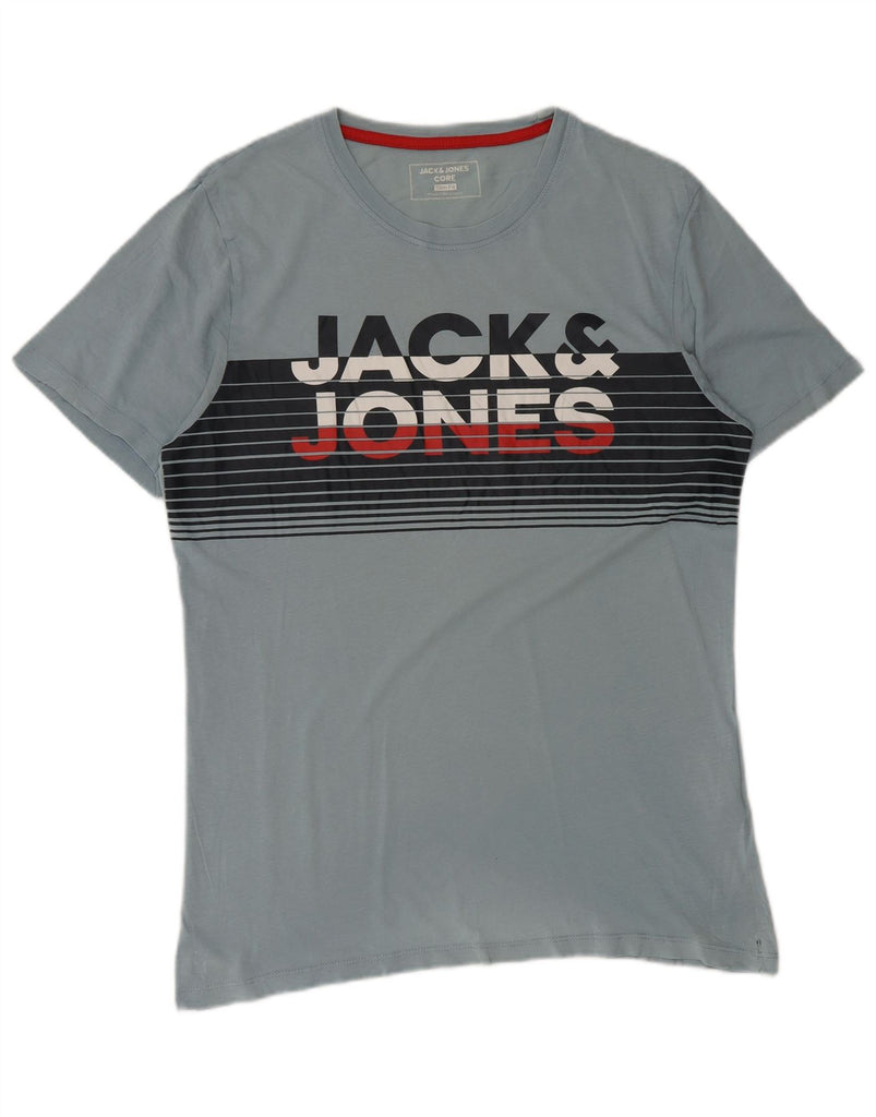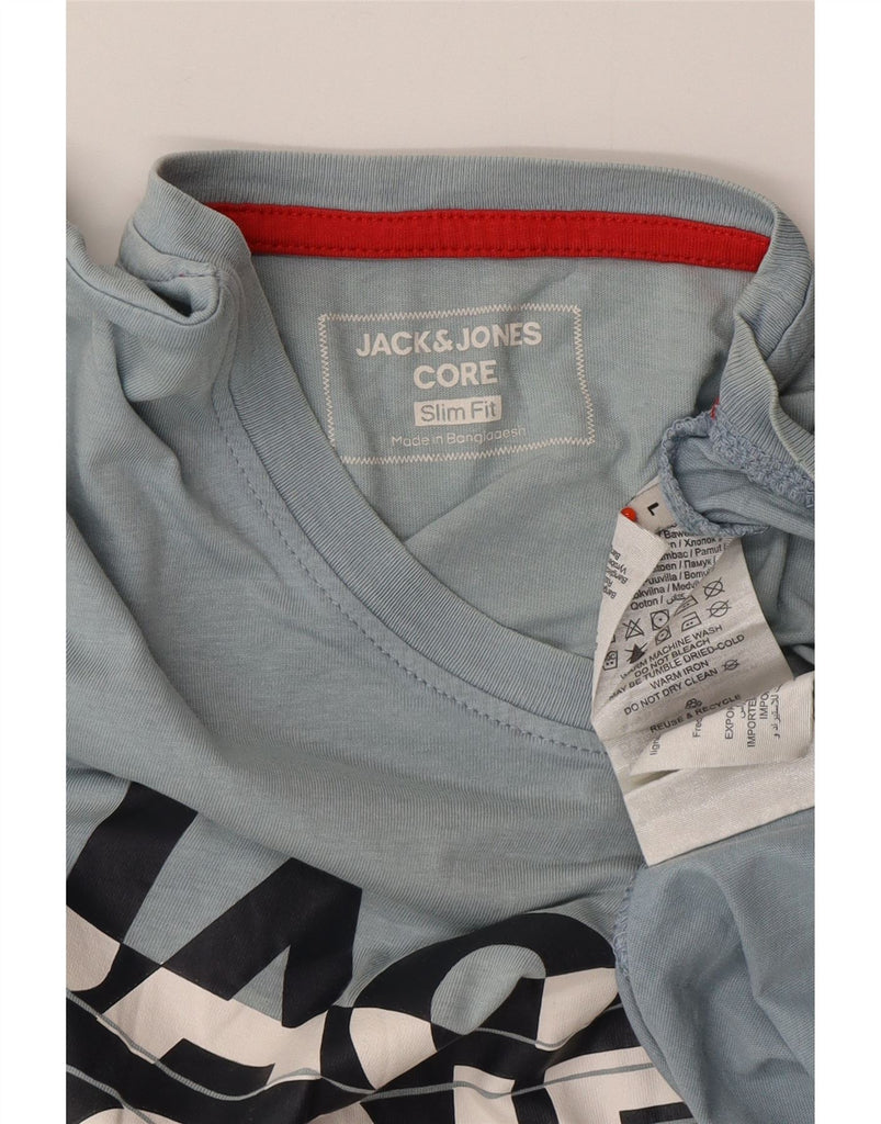 JACK & JONES Mens Slim Fit Graphic T-Shirt Top Large Blue Colourblock