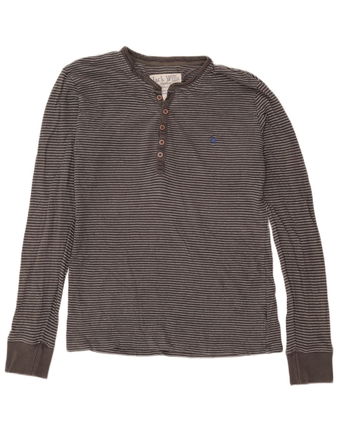 JACK WILLS Top da uomo a maniche lunghe in cotone gessato grigio piccolo