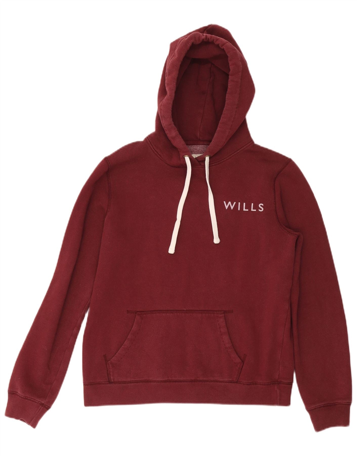 JACK WILLS Felpa con cappuccio grafica da donna UK 12 Cotone bordeaux medio