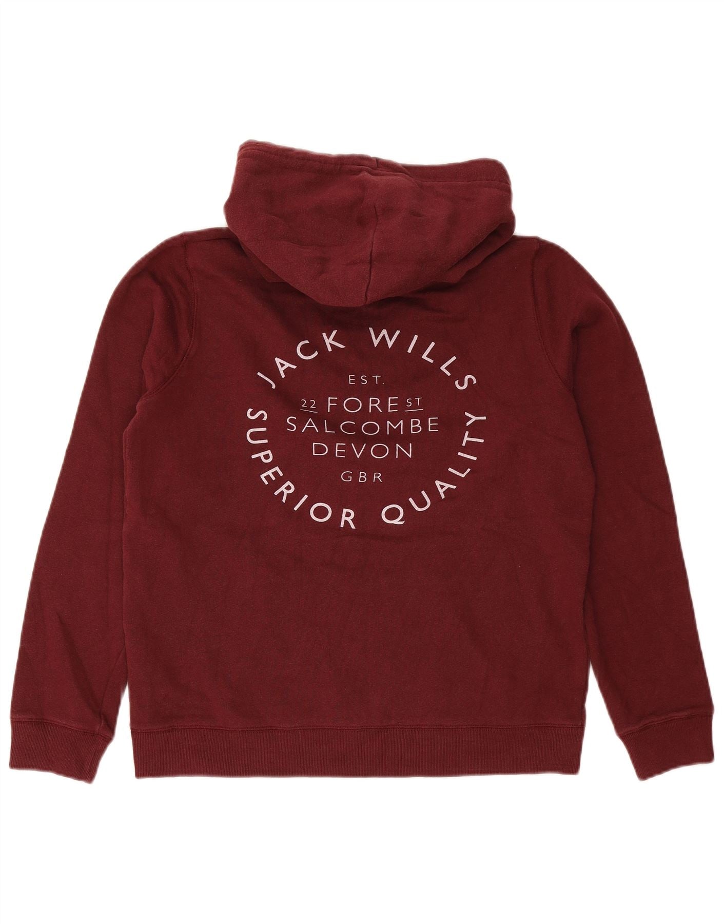 JACK WILLS Felpa con cappuccio grafica da donna UK 12 Cotone bordeaux medio