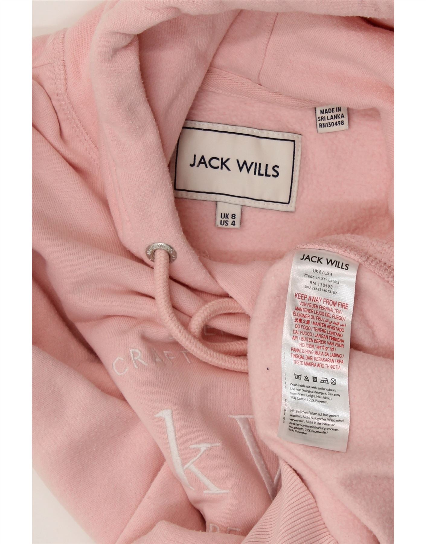 JACK WILLS Maglione con cappuccio oversize con grafica da donna UK 8 piccolo cotone rosa