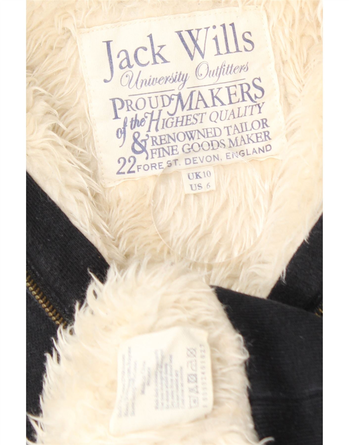 JACK WILLS Maglione con cappuccio e zip Sherpa grafico da donna UK 10 piccolo nero