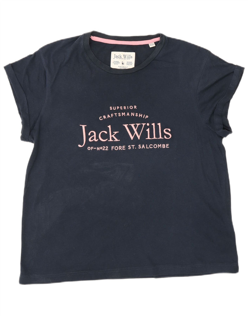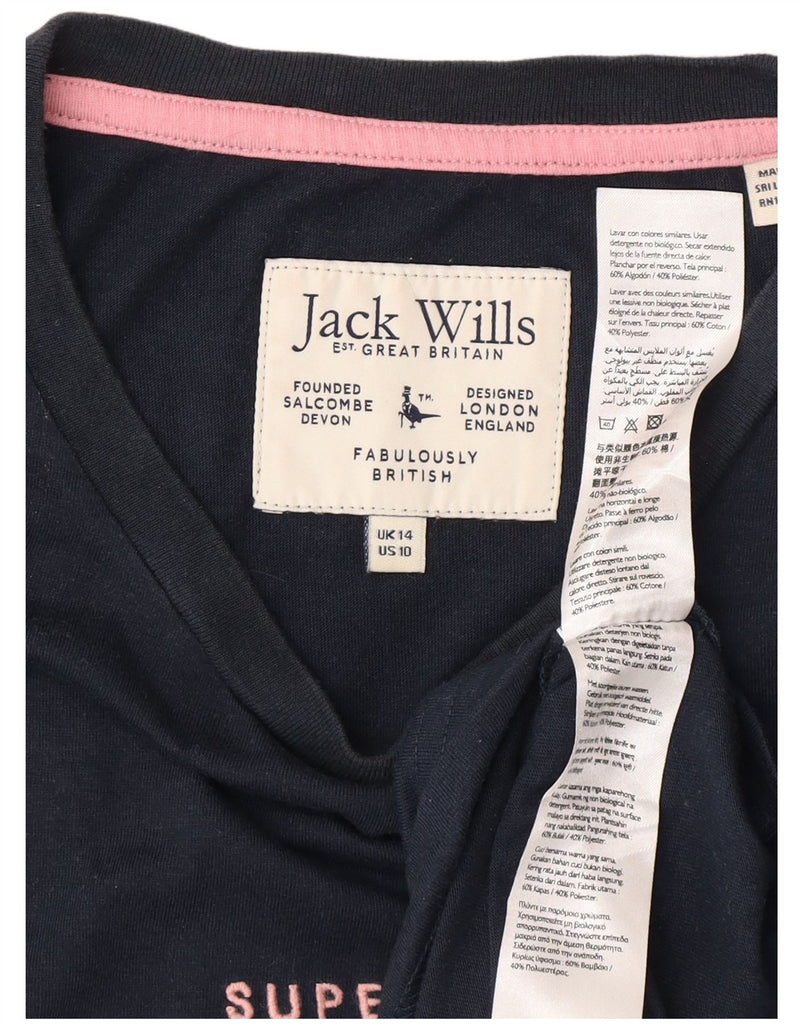 JACK WILLS Womens Graphic T-Shirt Top UK 14 Large Navy Blue Cotton