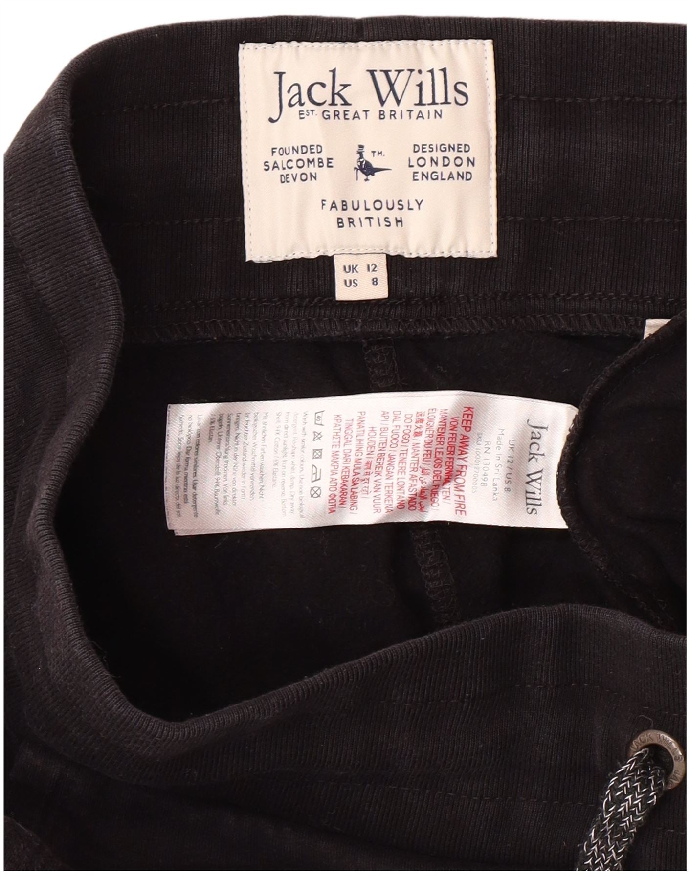 JACK WILLS Pantaloni da tuta con grafica da donna Joggers UK 12 Medio Nero