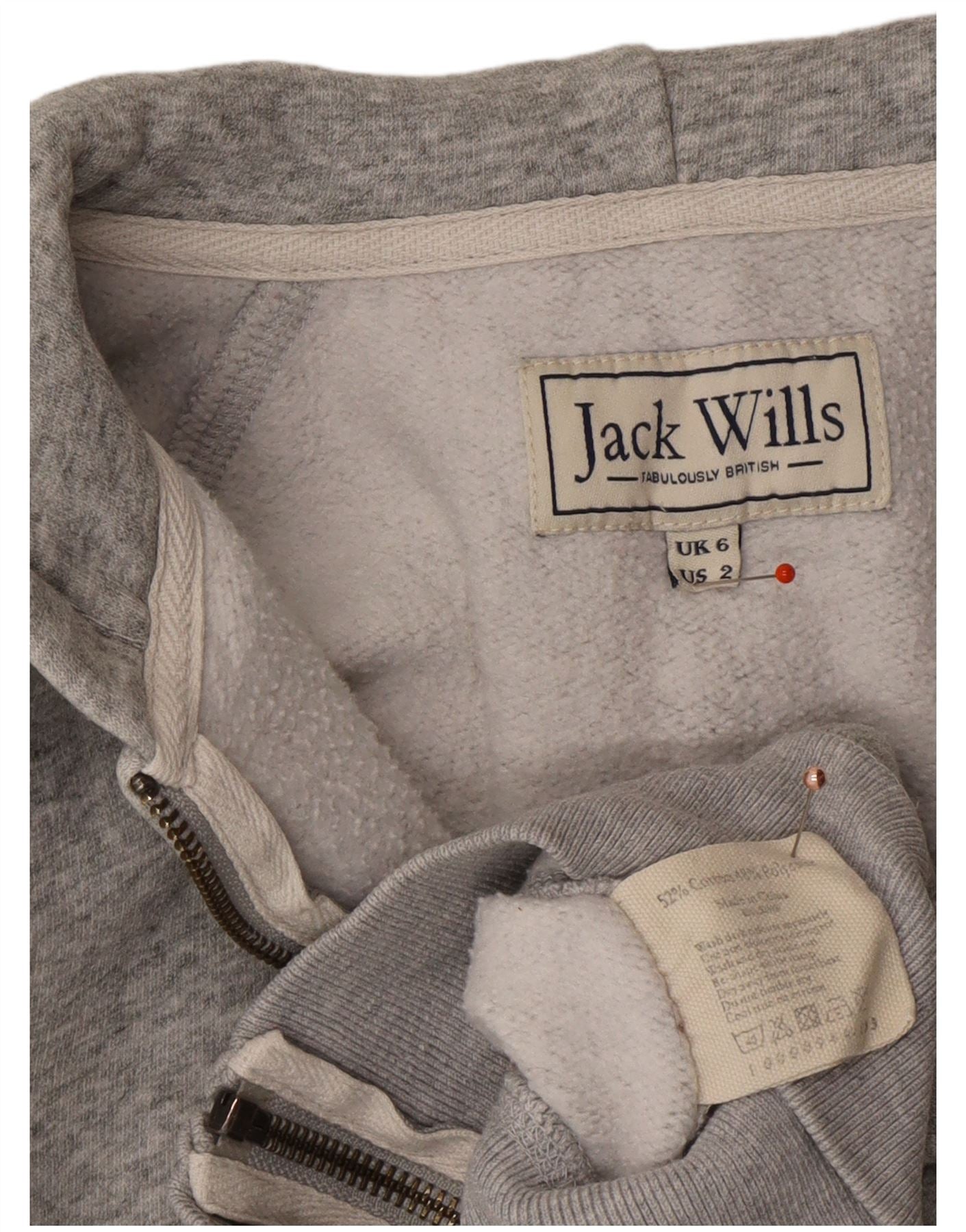 JACK WILLS Womens Graphic Zip Hoodie Sweater UK 6 XS Grey Cotton