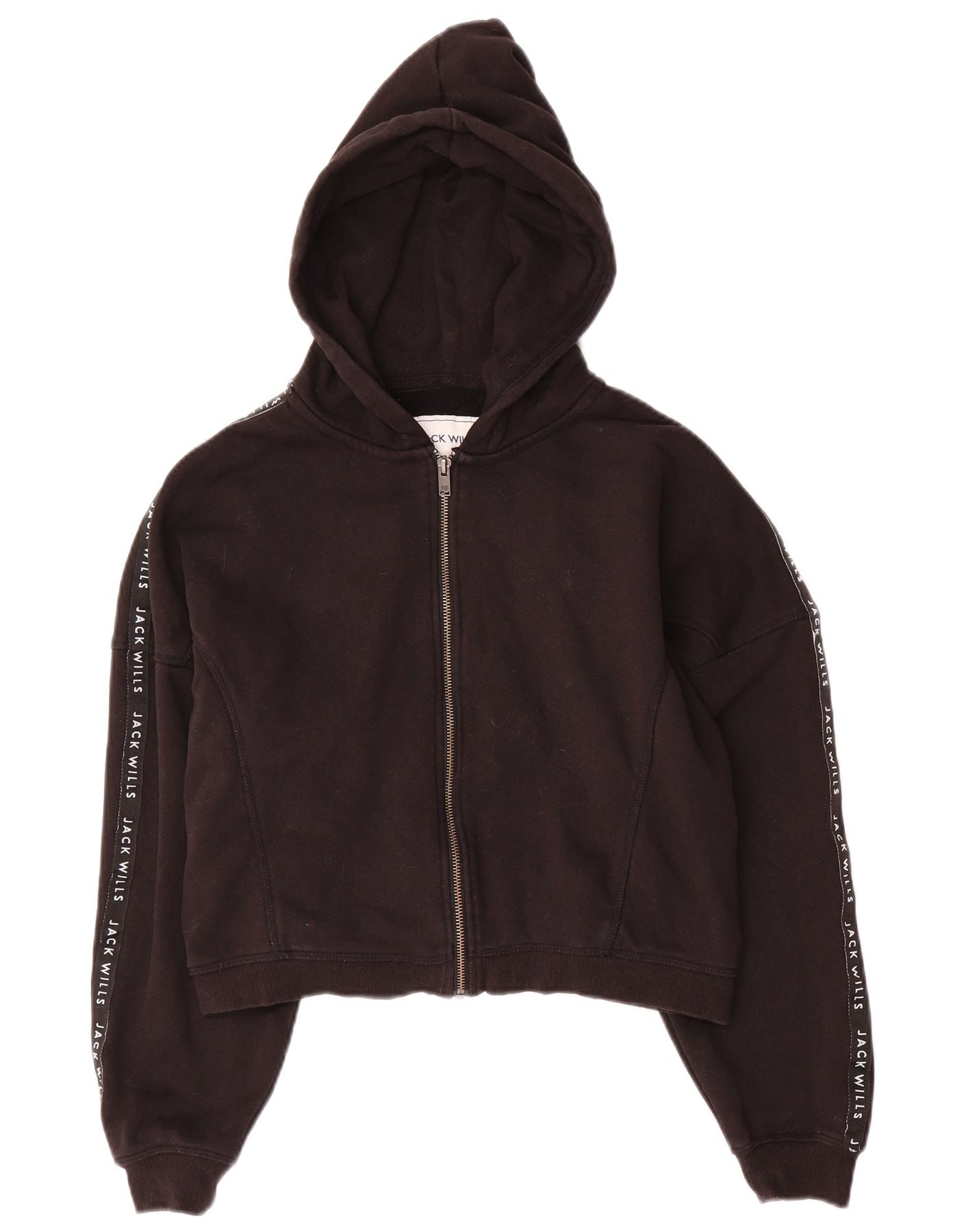JACK WILLS Maglione con cappuccio e zip corto oversize da donna UK 10 Piccolo Nero