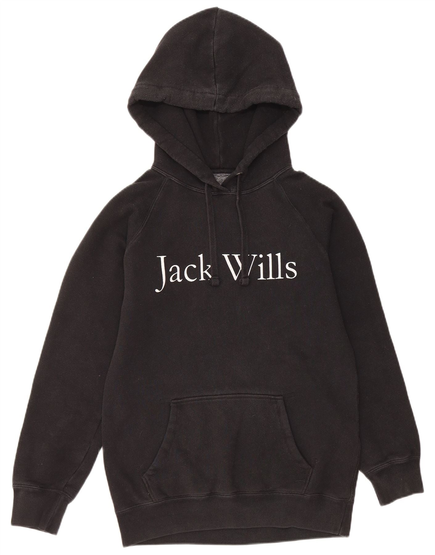 JACK WILLS Felpa con cappuccio grafica oversize da donna UK 6 XS Cotone nero