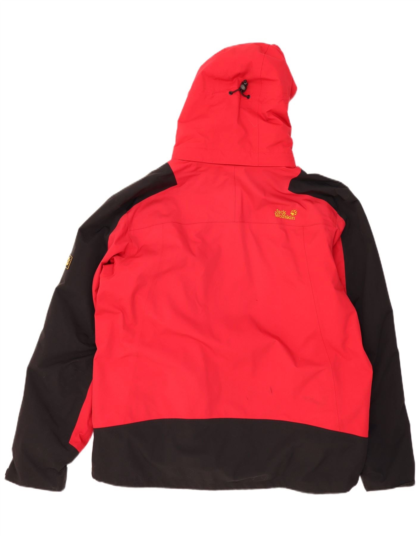 JACK WOLFSKIN Giacca a vento con cappuccio da uomo UK 48 4XL Rosso Colourblock