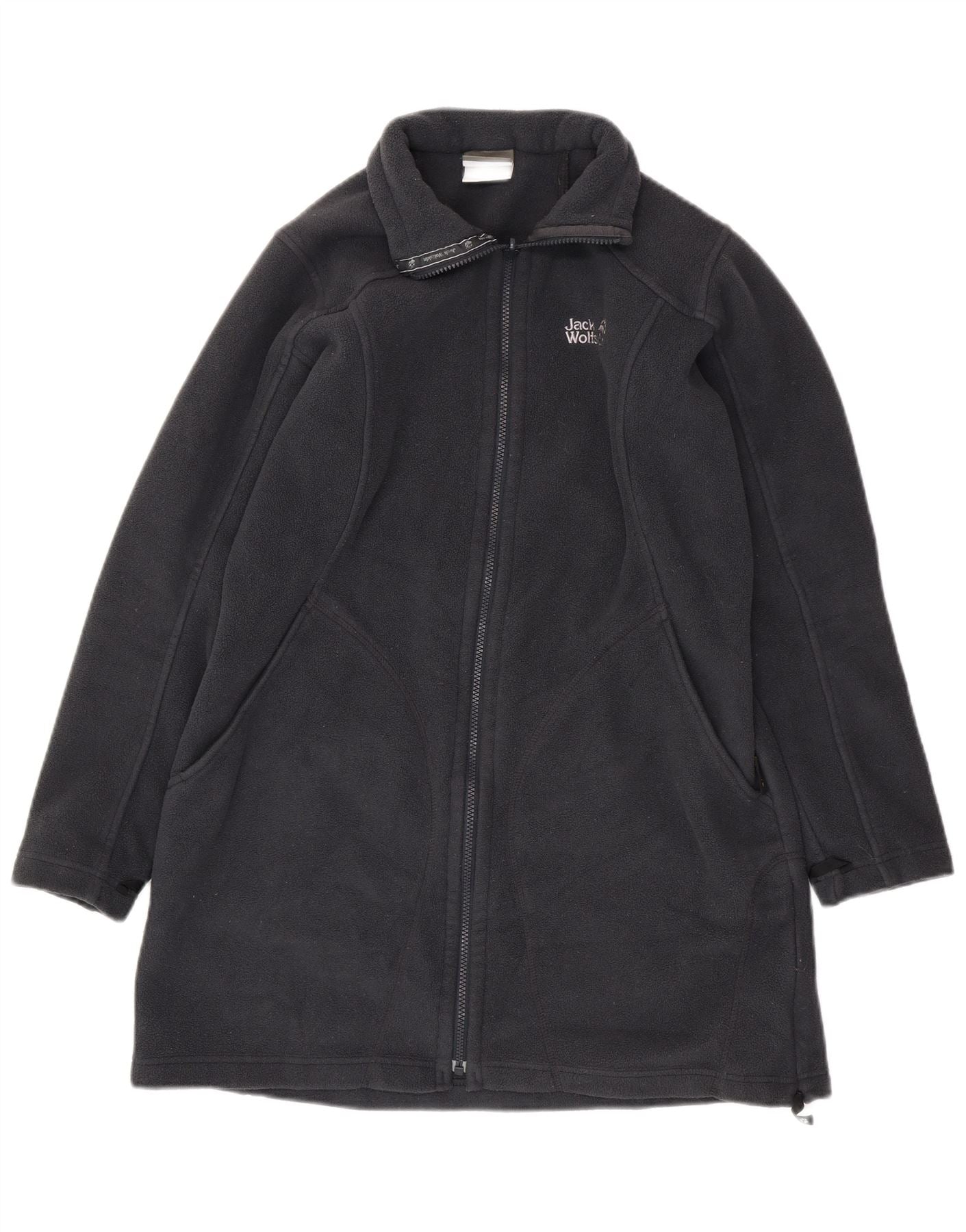 JACK WOLFSKIN Cappotto giacca a vento in pile da donna UK 16 Large Blu Navy