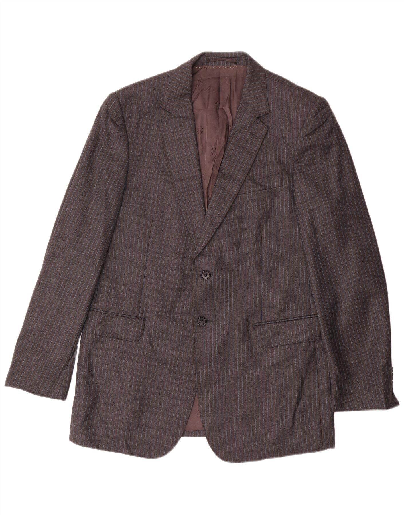 - Descrizione dell'IA: Questo abito da uomo in 2 pezzi Jaeger è sapientemente realizzato in lana vergine al 100%. Il tessuto grigio presenta un sottile motivo gessato, che aggiunge dettagli raffinati. La giacca vanta uno scollo classico con colletto e una chiusura frontale a due bottoni. Include pratiche tasche ed è completamente foderato per il massimo comfort. I pantaloni completano la giacca con una vestibilità regolare, garantendo una silhouette elegante. Questo abito dalla vestibilità regolare incarna uno stile classico e senza tempo, perfetto per le occasioni professionali.