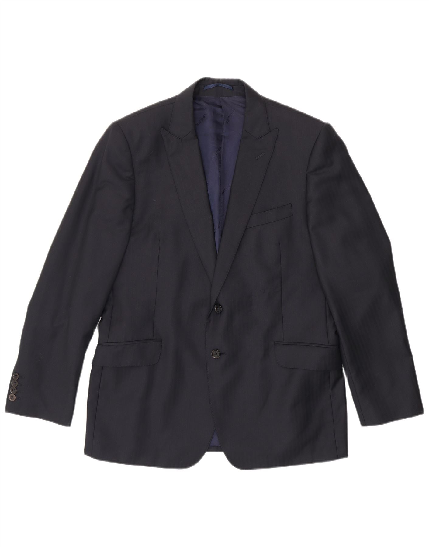 JAEGER Giacca blazer da uomo a 2 bottoni Alfred Brown UK 44 2XL Blu navy