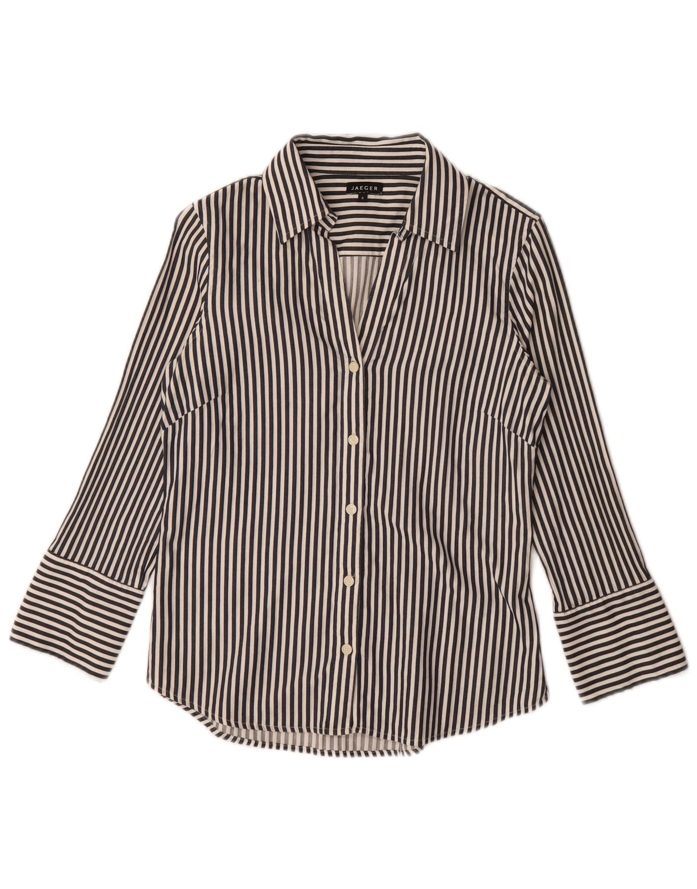 JAEGER Womens Shirt UK 8 Small Blue Pinstripe Cotton