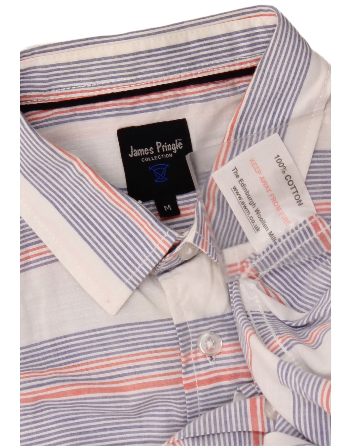 JAMES PRINGLE Camicia da uomo a maniche corte in cotone a righe bianche medie