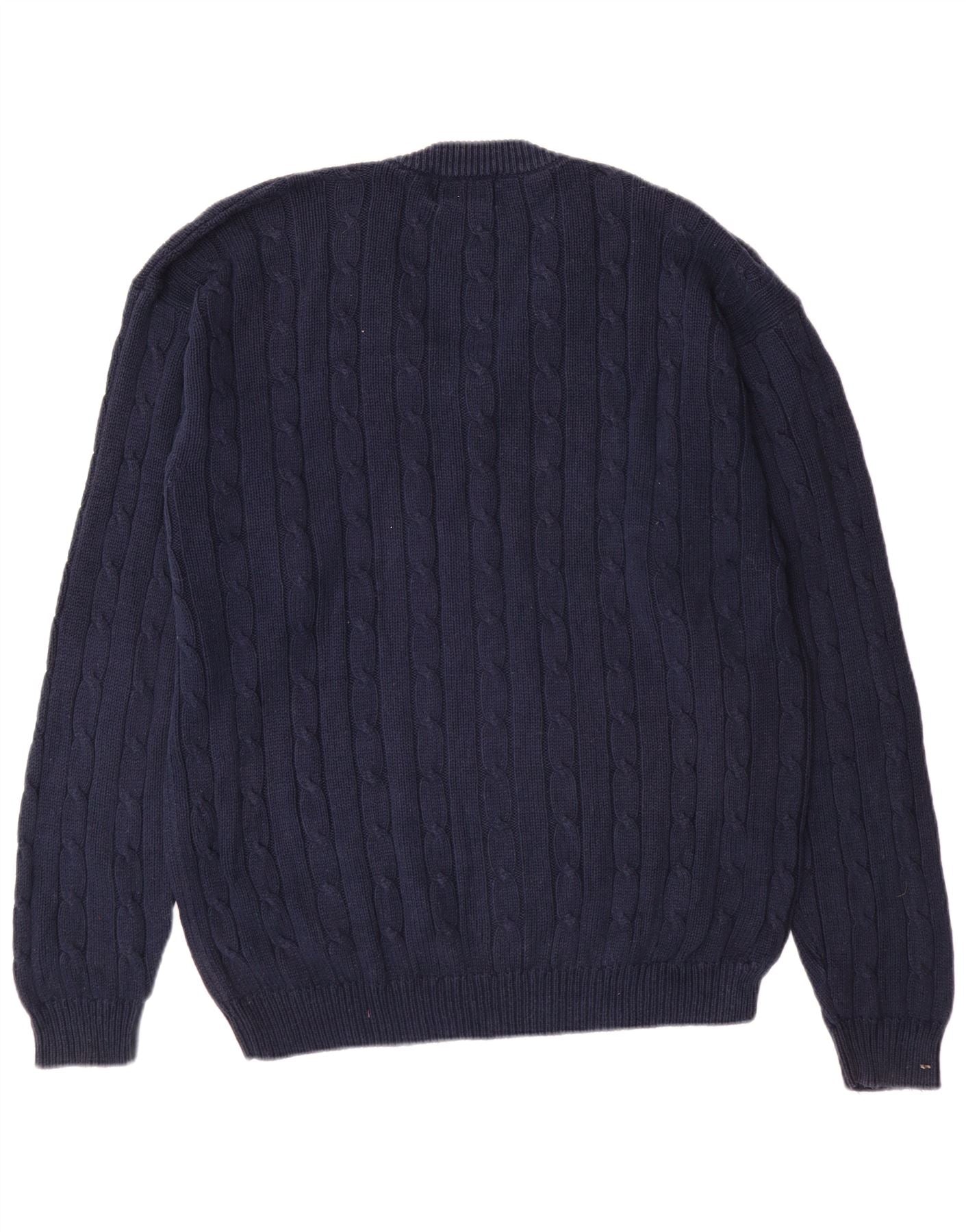 - Descrizione dell'IA: Questo maglione da uomo con scollo a V Jockey è realizzato in maglia di cotone al 100%, offrendo una sensazione morbida e confortevole. Presenta un ricco colore blu navy con un classico motivo a trecce. Lo scollo a V dona un look elegante. Le maniche lunghe e la vestibilità regolare garantiscono un'usura confortevole. Questo stile pullover offre un fascino senza tempo.