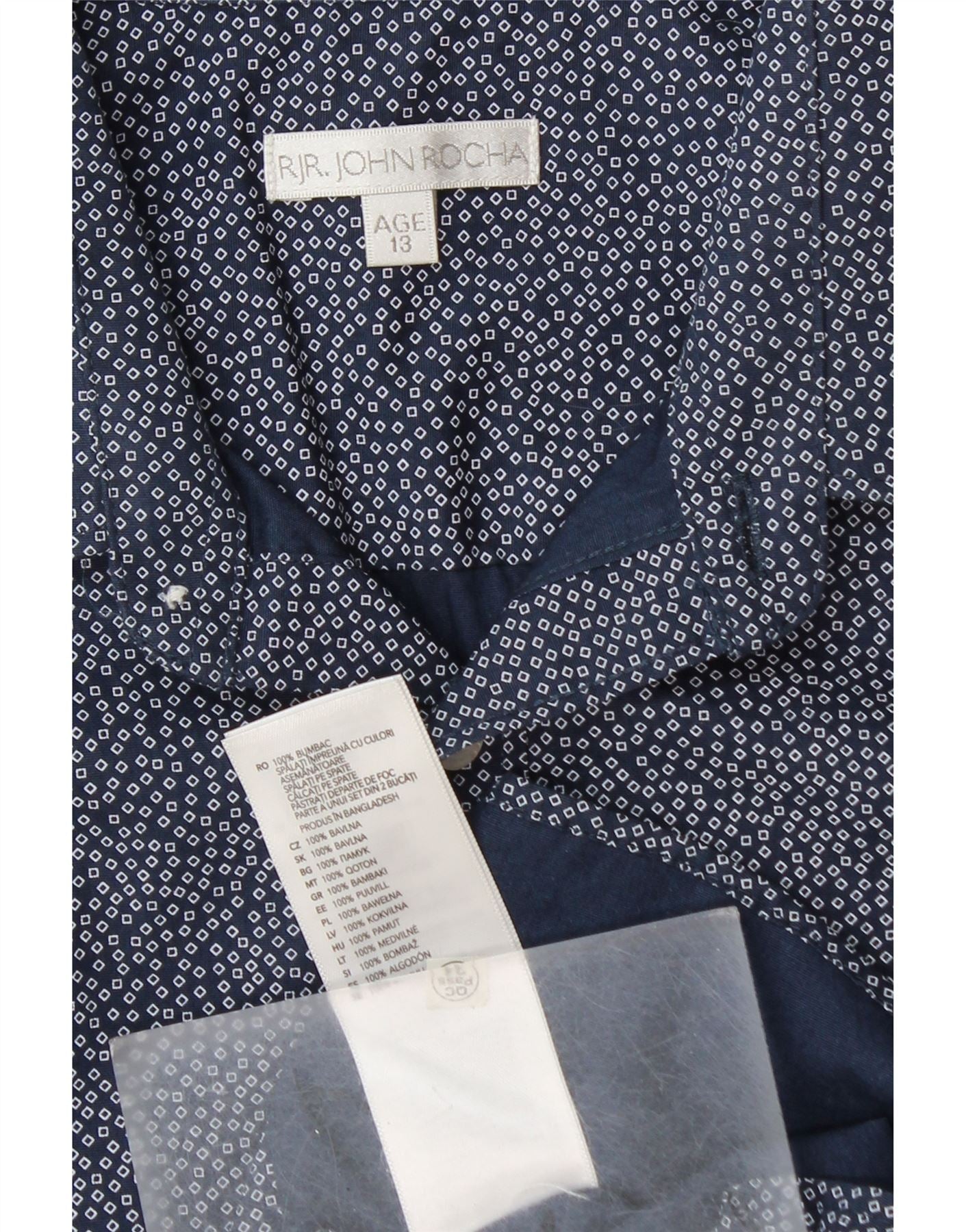 JOHN ROCHA Boys Short Sleeve Shirt 12-13 Years Navy Blue Geometric Cotton