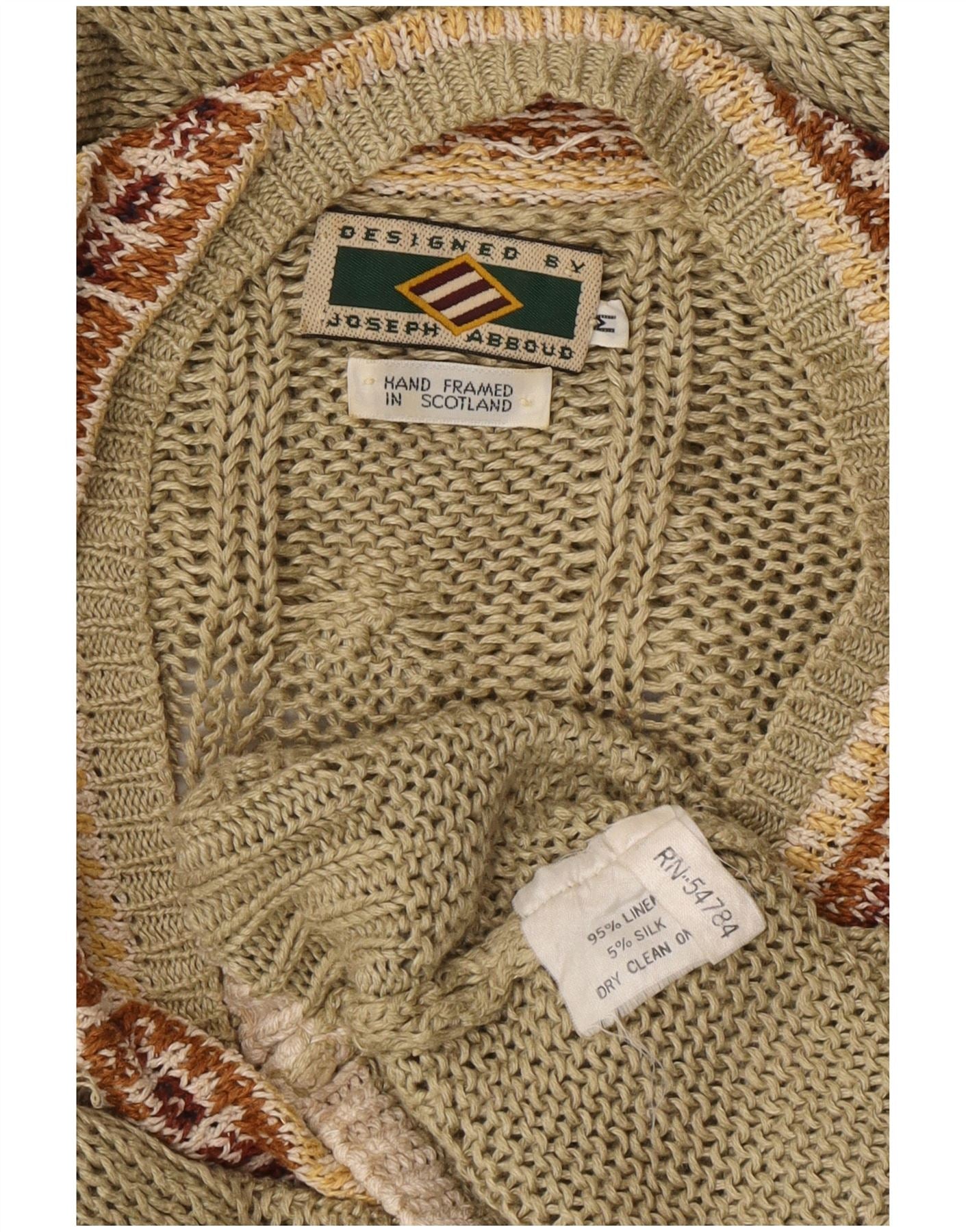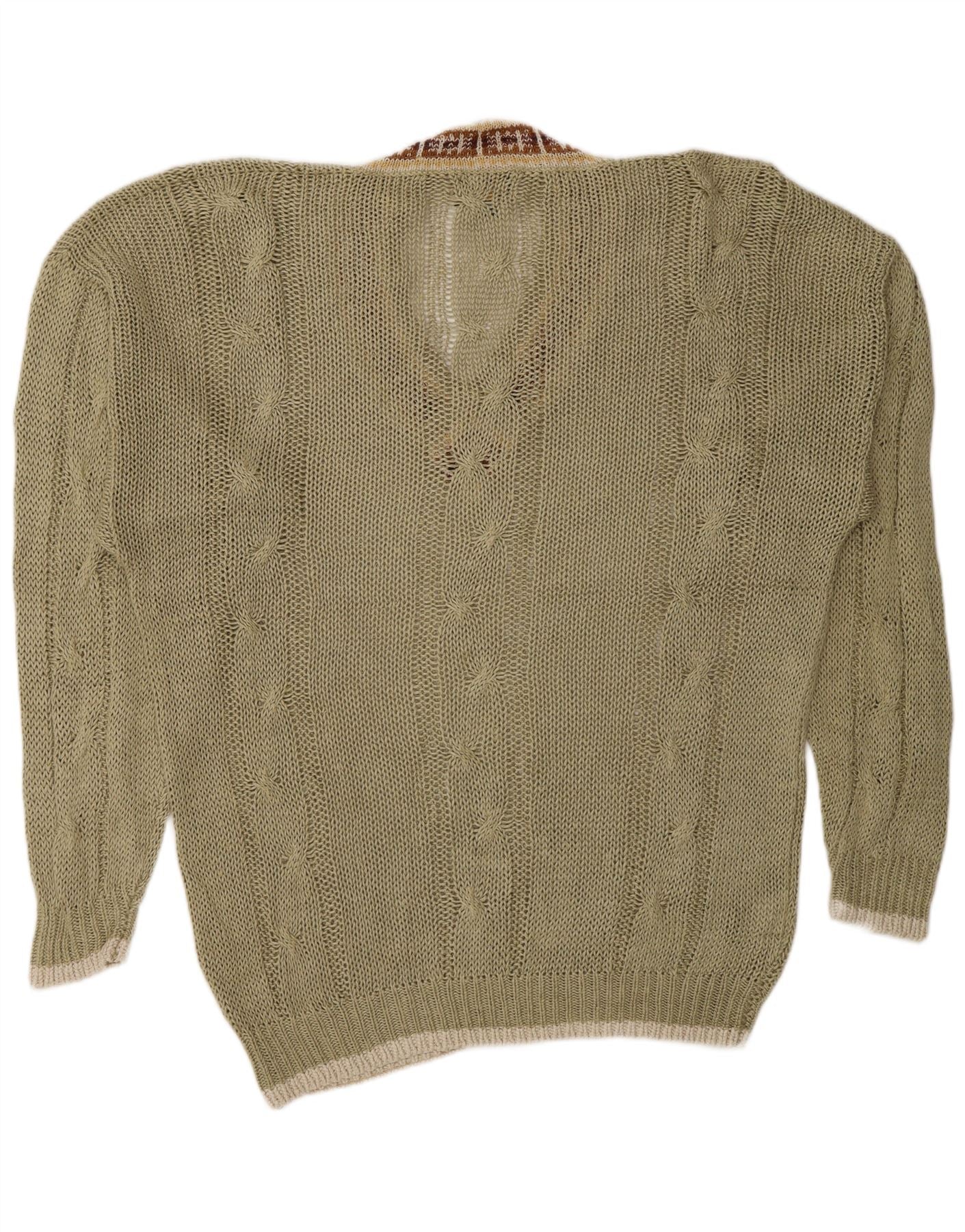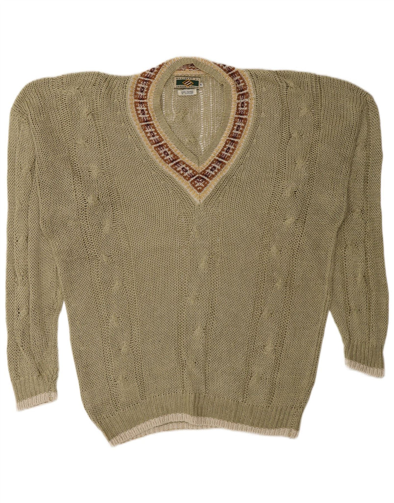 JOSEPH ABBOUD Mens V-Neck Jumper Sweater Medium Khaki Fair Isle Linen