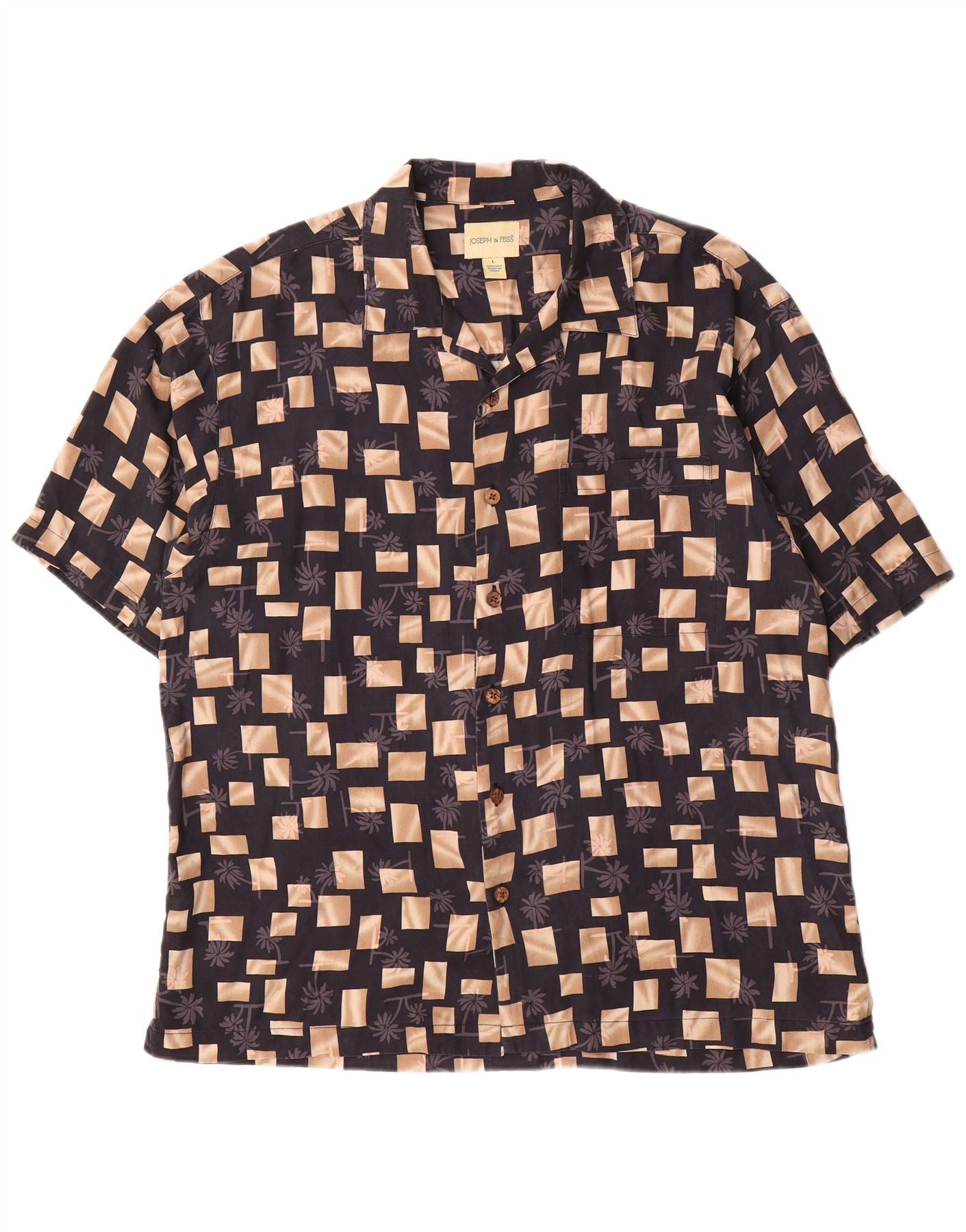 Camicia a maniche corte da uomo Joseph & Feiss grande in seta geometrica nera