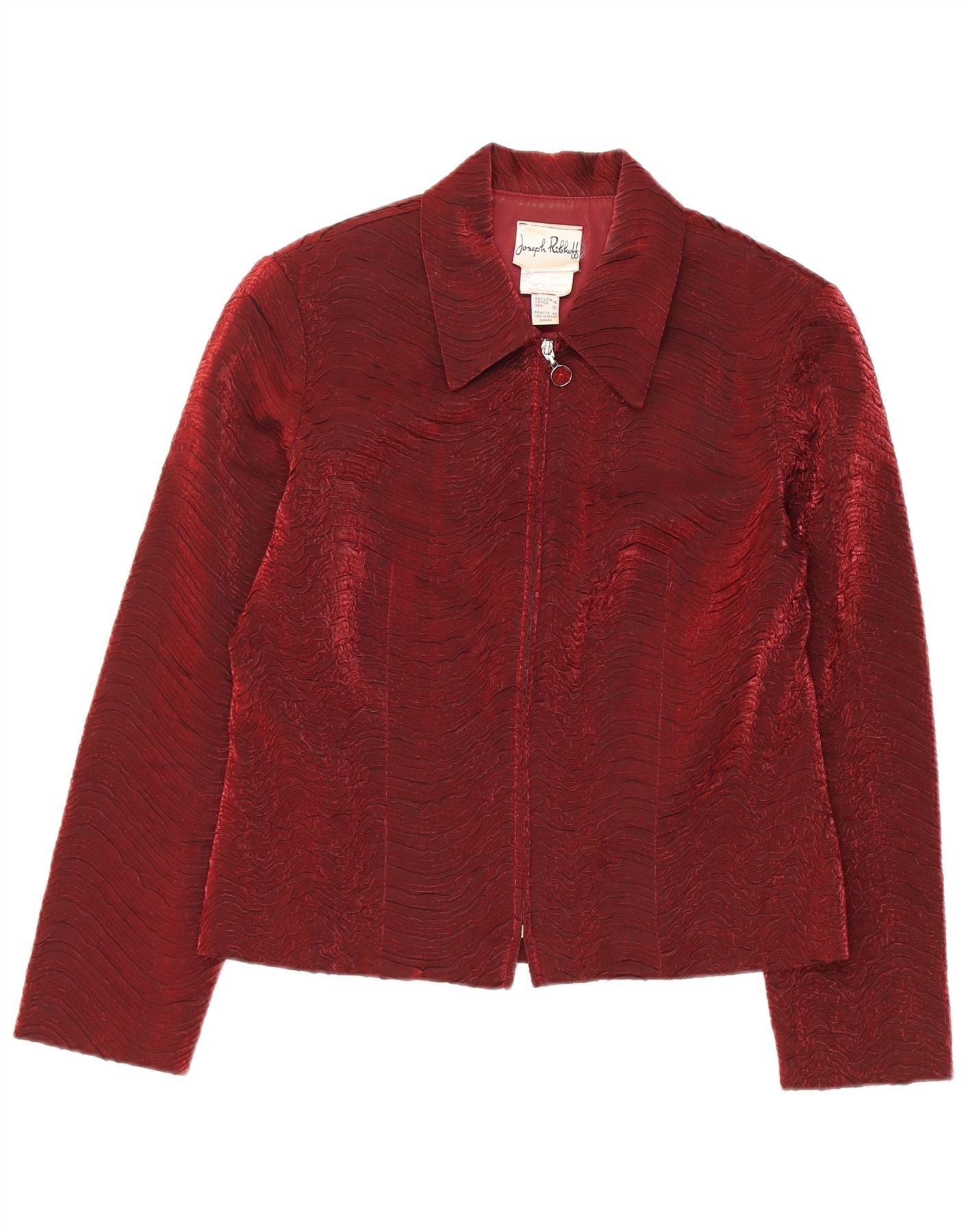 JOSEPH RIBKOFF Giacca blazer corta da donna UK 12 Rayon bordeaux medio
