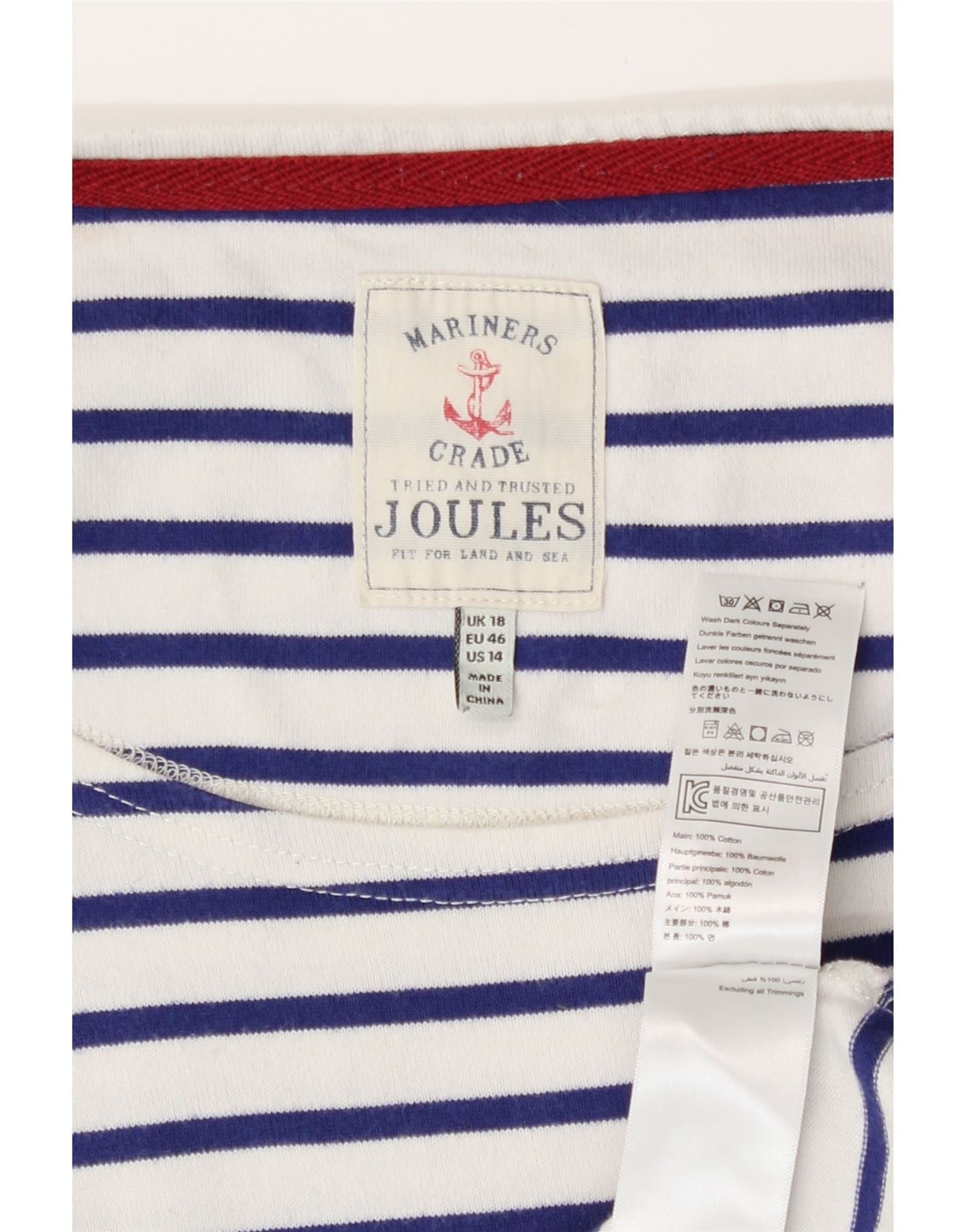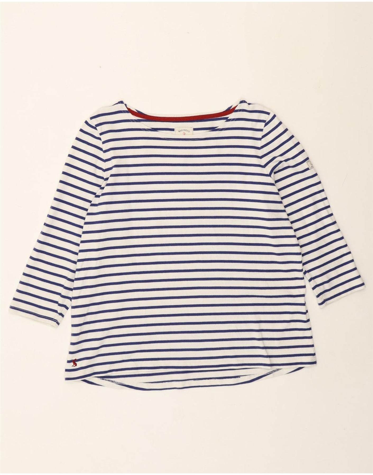 Joules Top da donna manica 3/4 UK 18 XL cotone a righe bianche