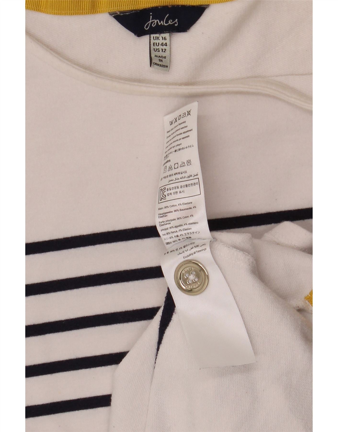 JOULES Top da donna a maniche lunghe UK 16 Large White Striped Cotton