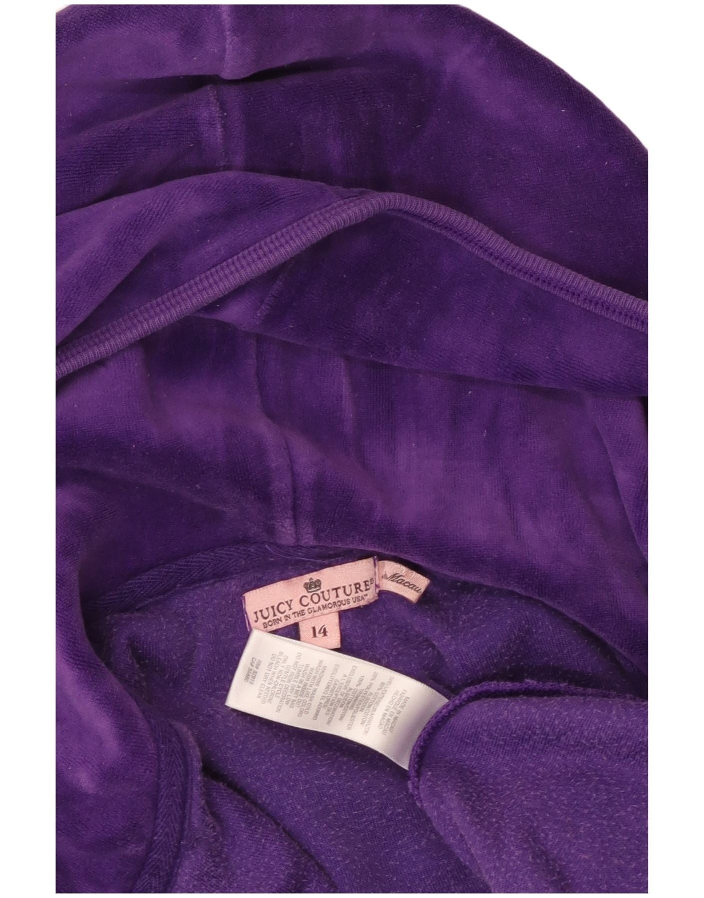 JUICY COUTURE Girls Graphic Zip Hoodie Sweater 13-14 Years Purple Cotton