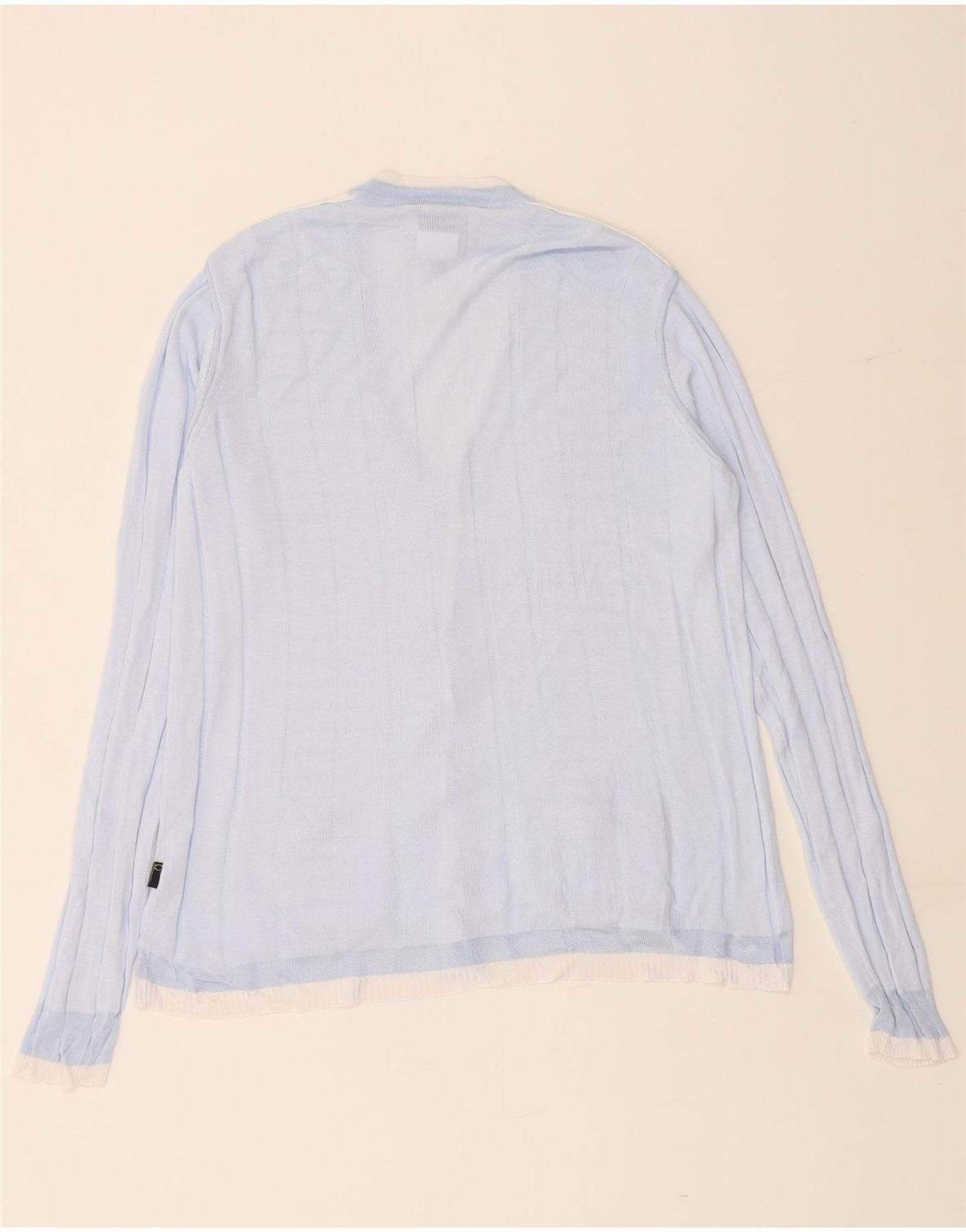 JUST CAVALLI Womens Cardigan Sweater UK 16 Large Blue Colourblock Viscose