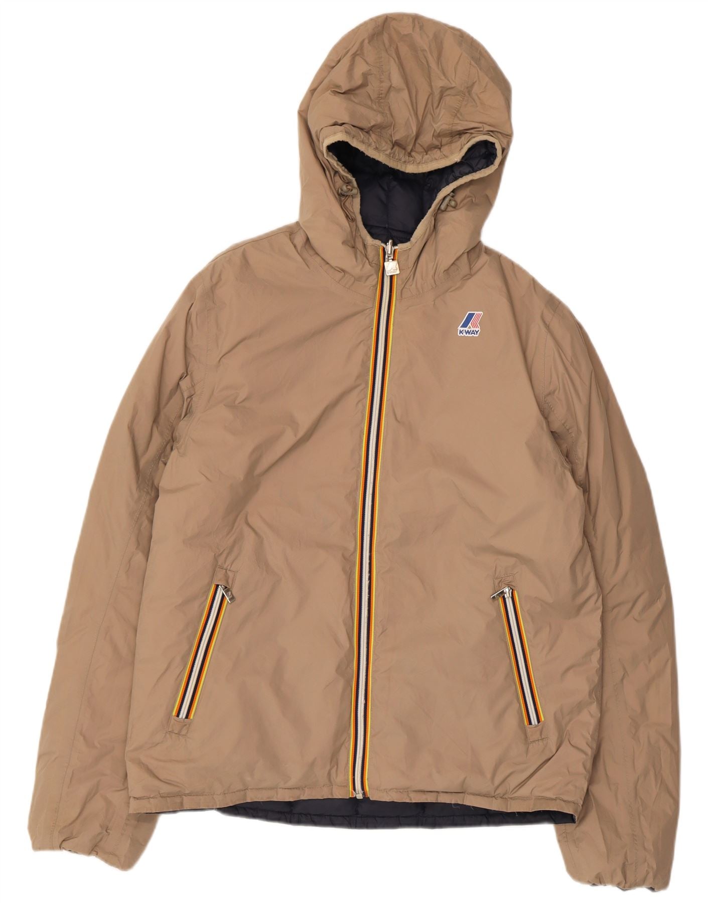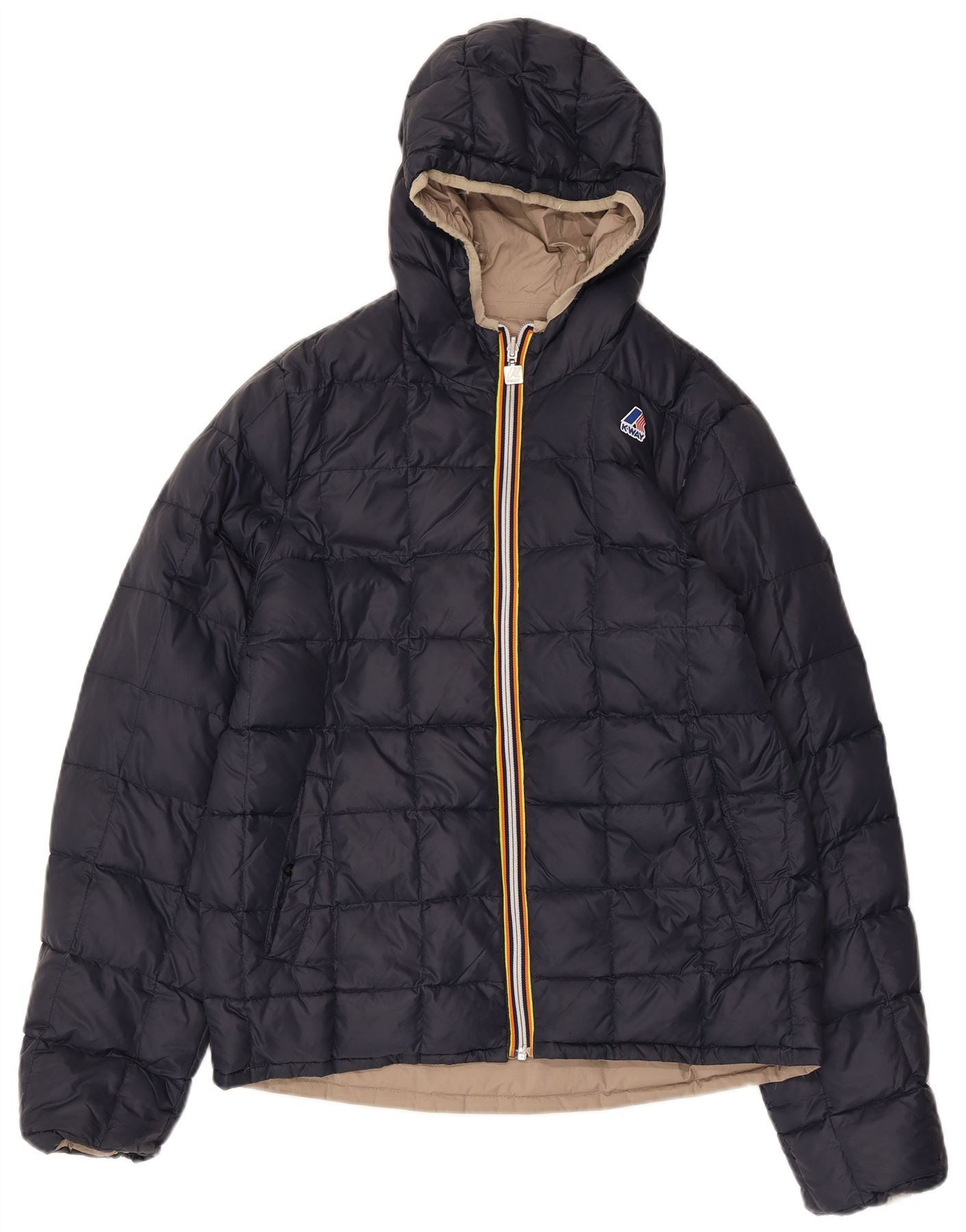 K-WAY Mens Padded Hooded Reversible Jacket UK 40 Large Navy Blue Polyamide