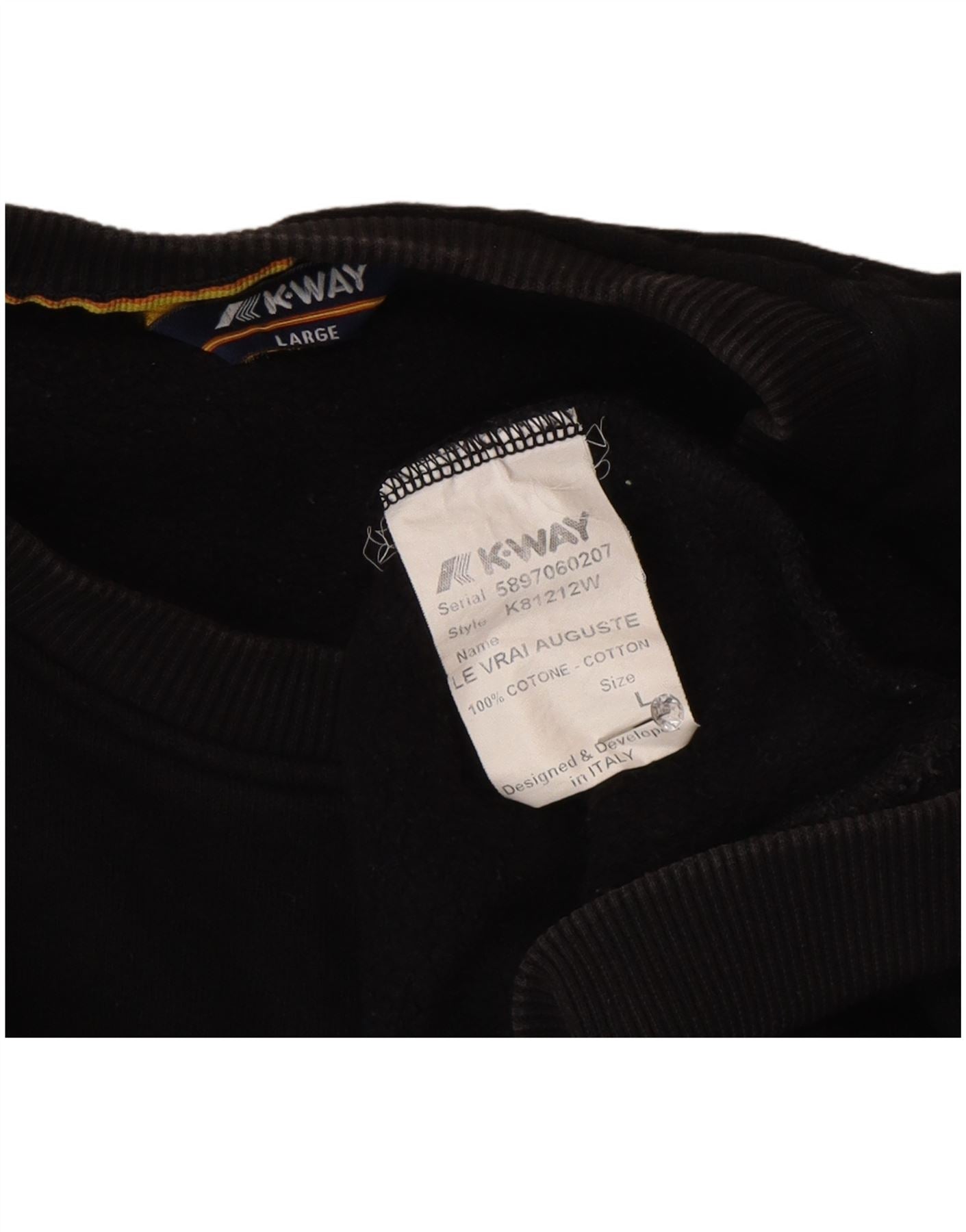 Felpa K-Way Uomo Maglione Large Nero in Cotone