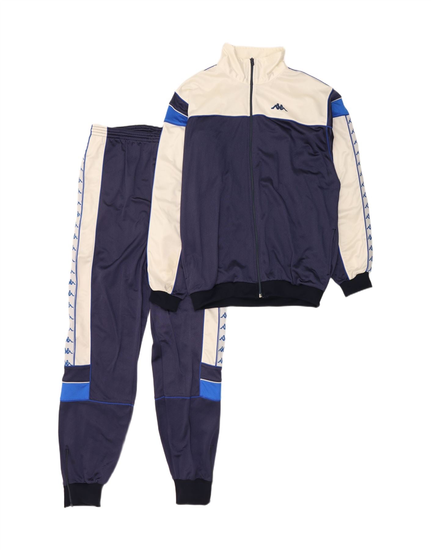 KAPPA Mens Graphic Full Tracksuit XL Navy Blue Colourblock Triacetate