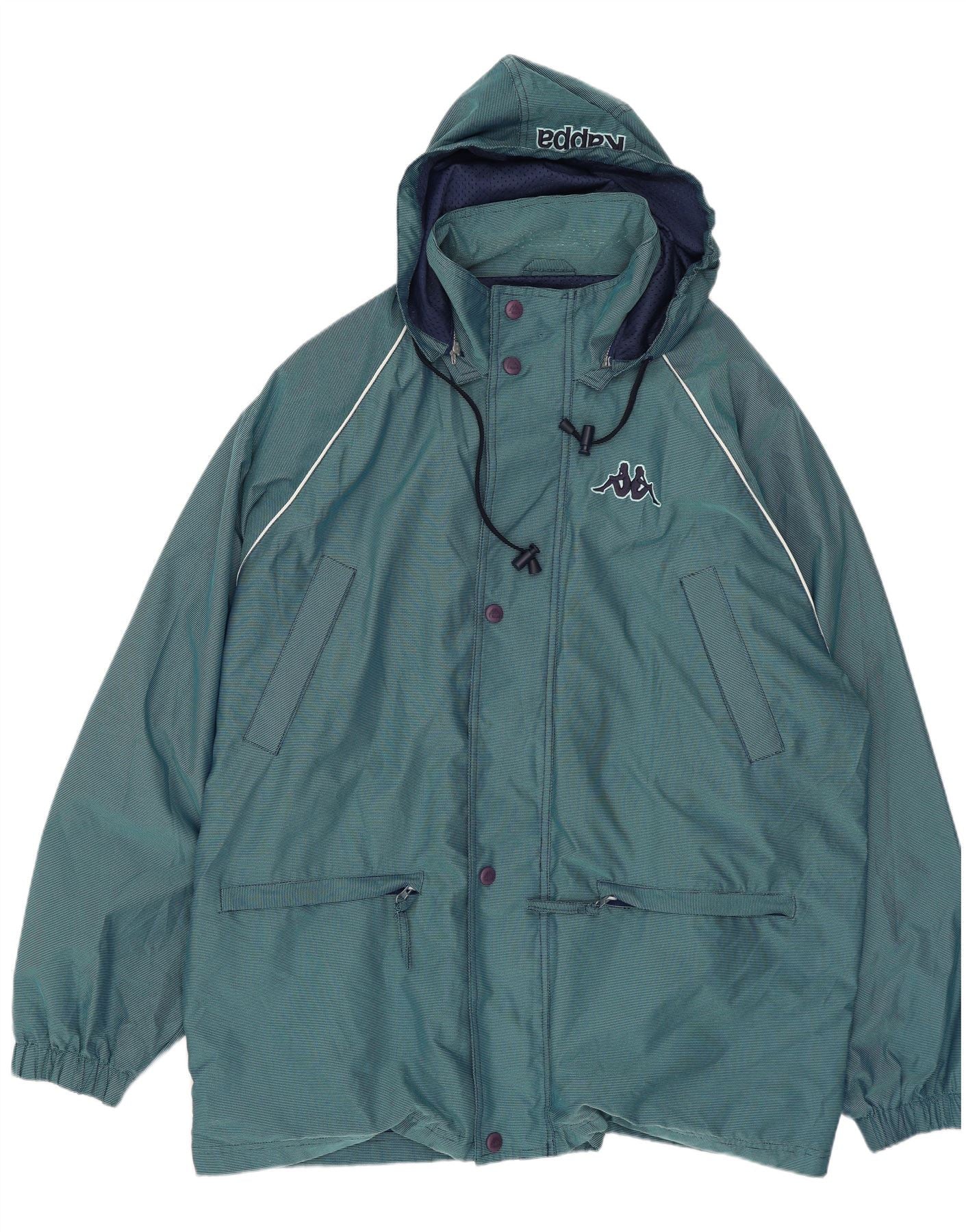 Giacca antipioggia da uomo con cappuccio grafico KAPPA UK 42 XL nylon blu
