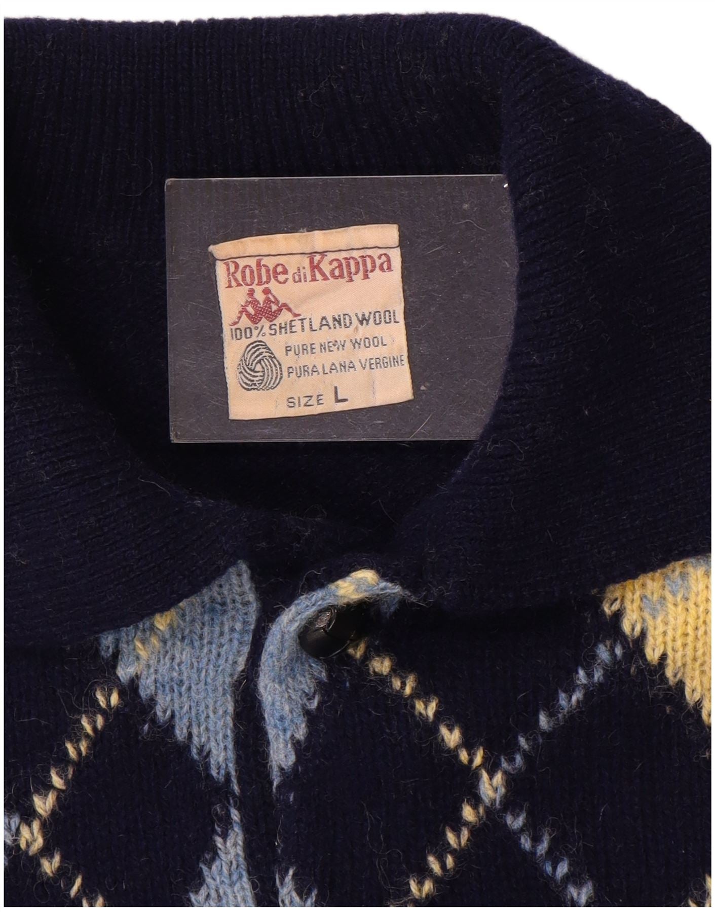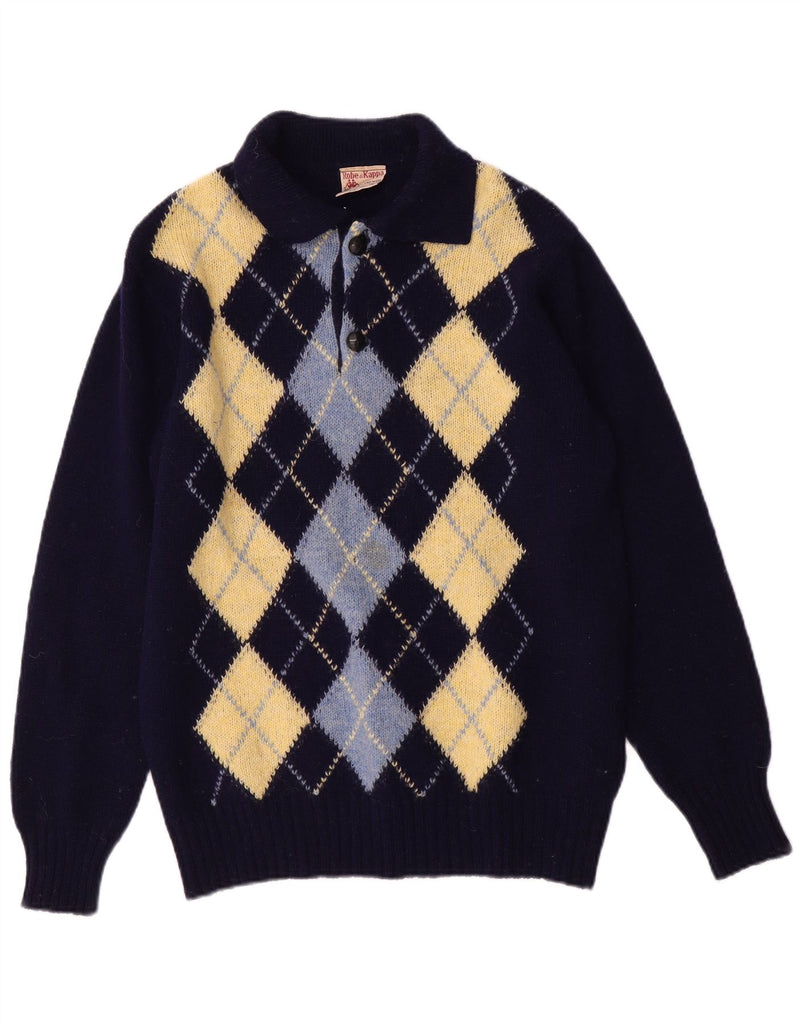 KAPPA Maglione da uomo con collo alto, grande, blu navy, a rombi/lana diamante