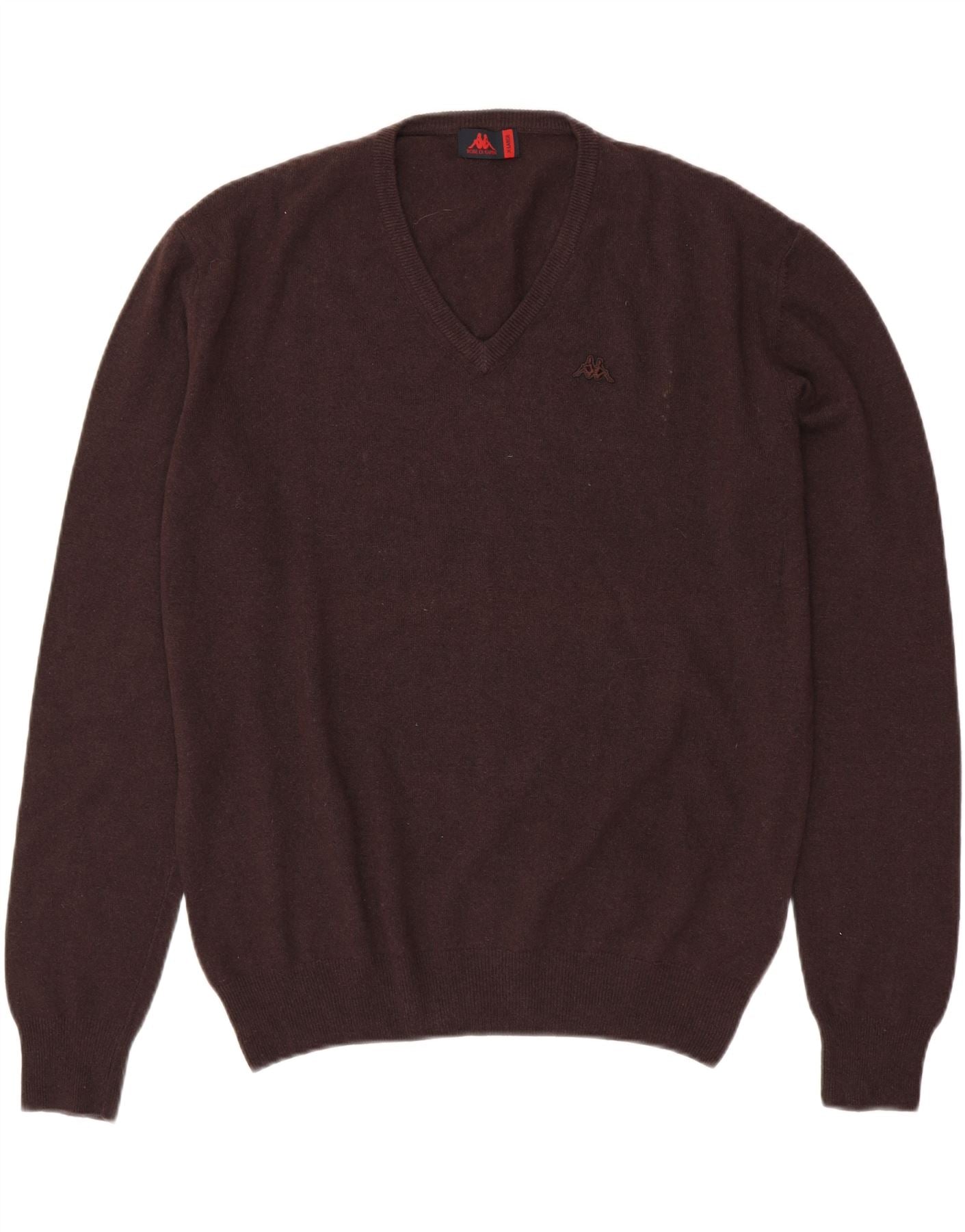 Maglione KAPPA da uomo con scollo a V XL in lana marrone