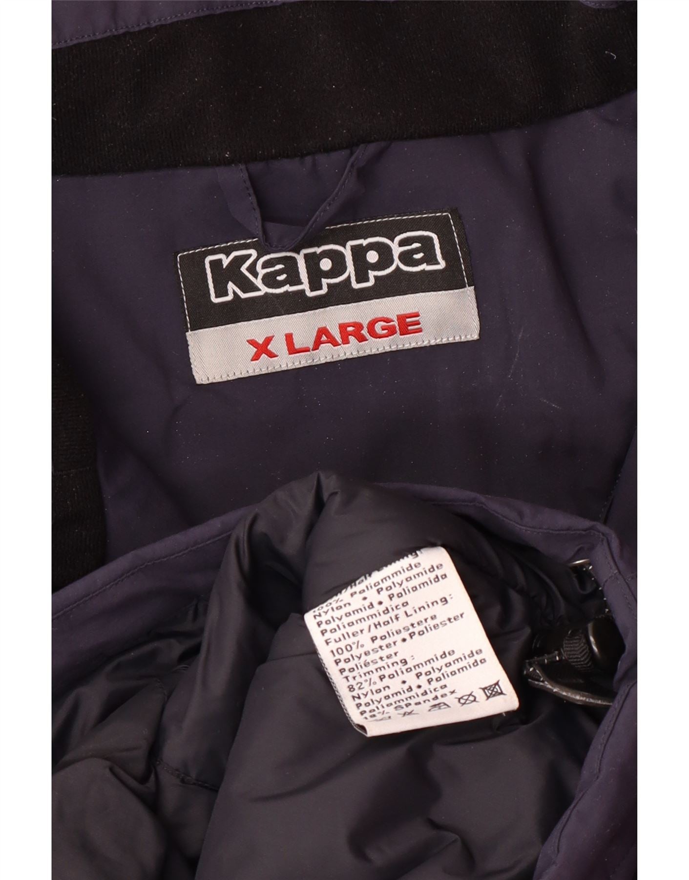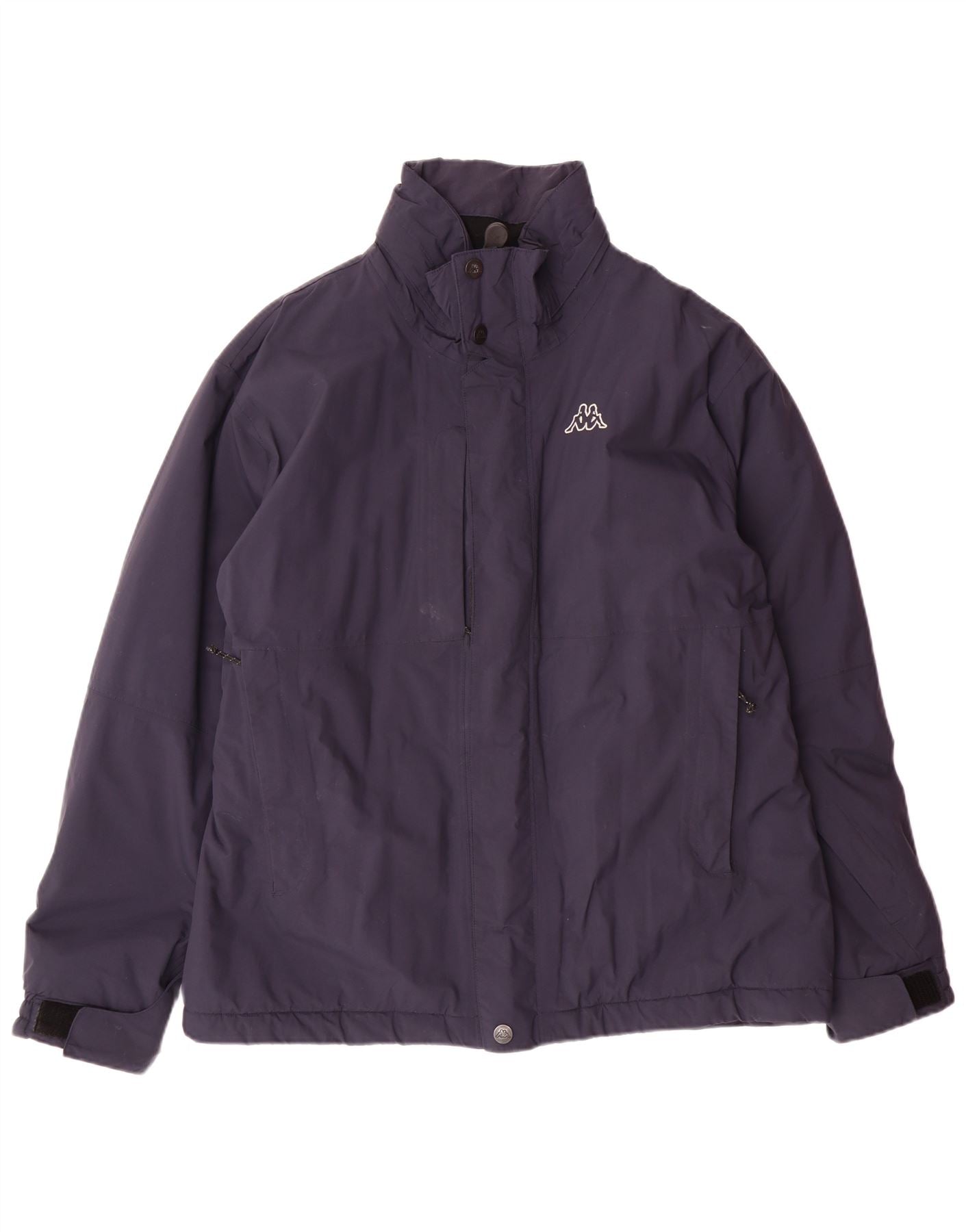 - Descrizione dell'IA: Questa giacca imbottita da uomo Kappa è realizzata in resistente poliammide blu navy, offrendo una finitura antivento e imbottita. Presenta un collo alto e maniche lunghe per un'ampia copertura. La chiusura full zip è completata da una patta con bottoni automatici. Un sottile logo ricamato adorna il petto. Pratiche tasche sono incluse per comodità. La vestibilità regolare garantisce una vestibilità comoda.