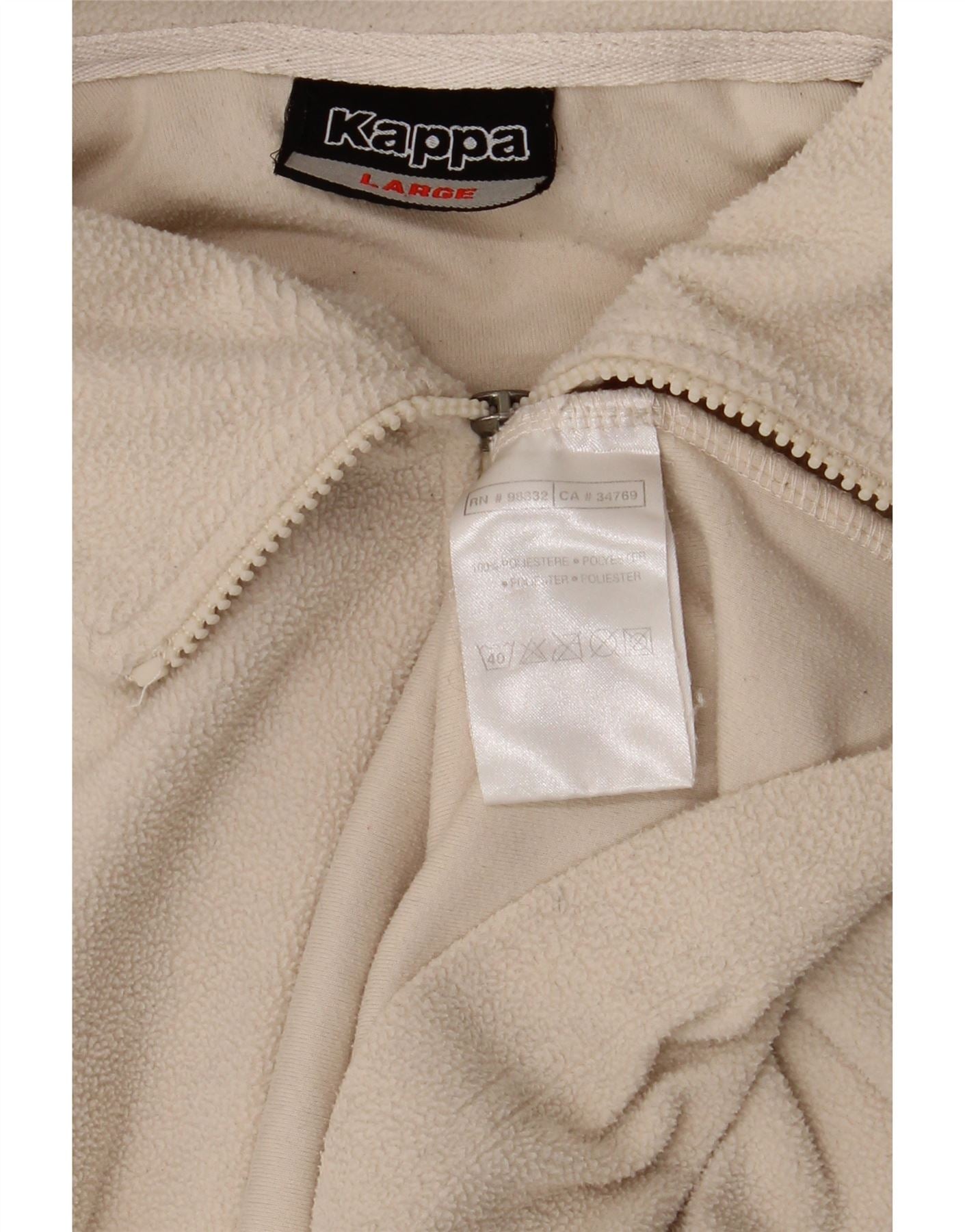 Maglione in pile da uomo KAPPA con zip e collo, grande, in poliestere bianco sporco