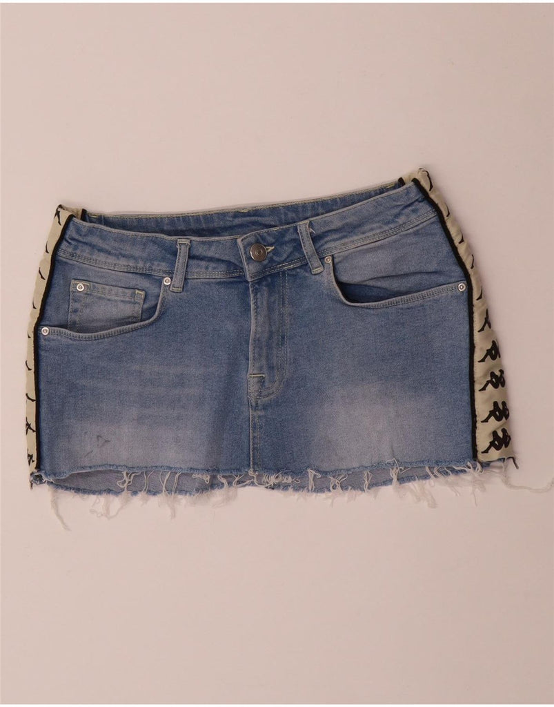 Minigonna da donna in denim grafico KAPPA grande W32 in cotone color block blu
