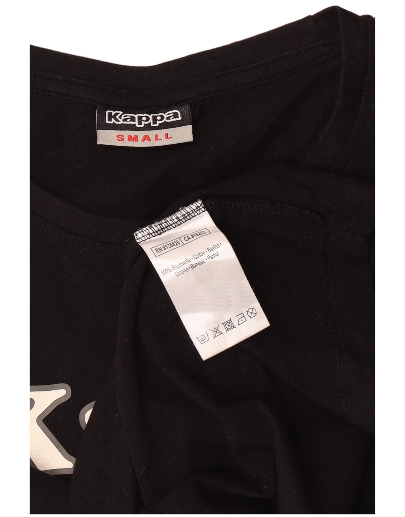 T-shirt grafica da donna KAPPA Top UK 10 piccola in cotone nero