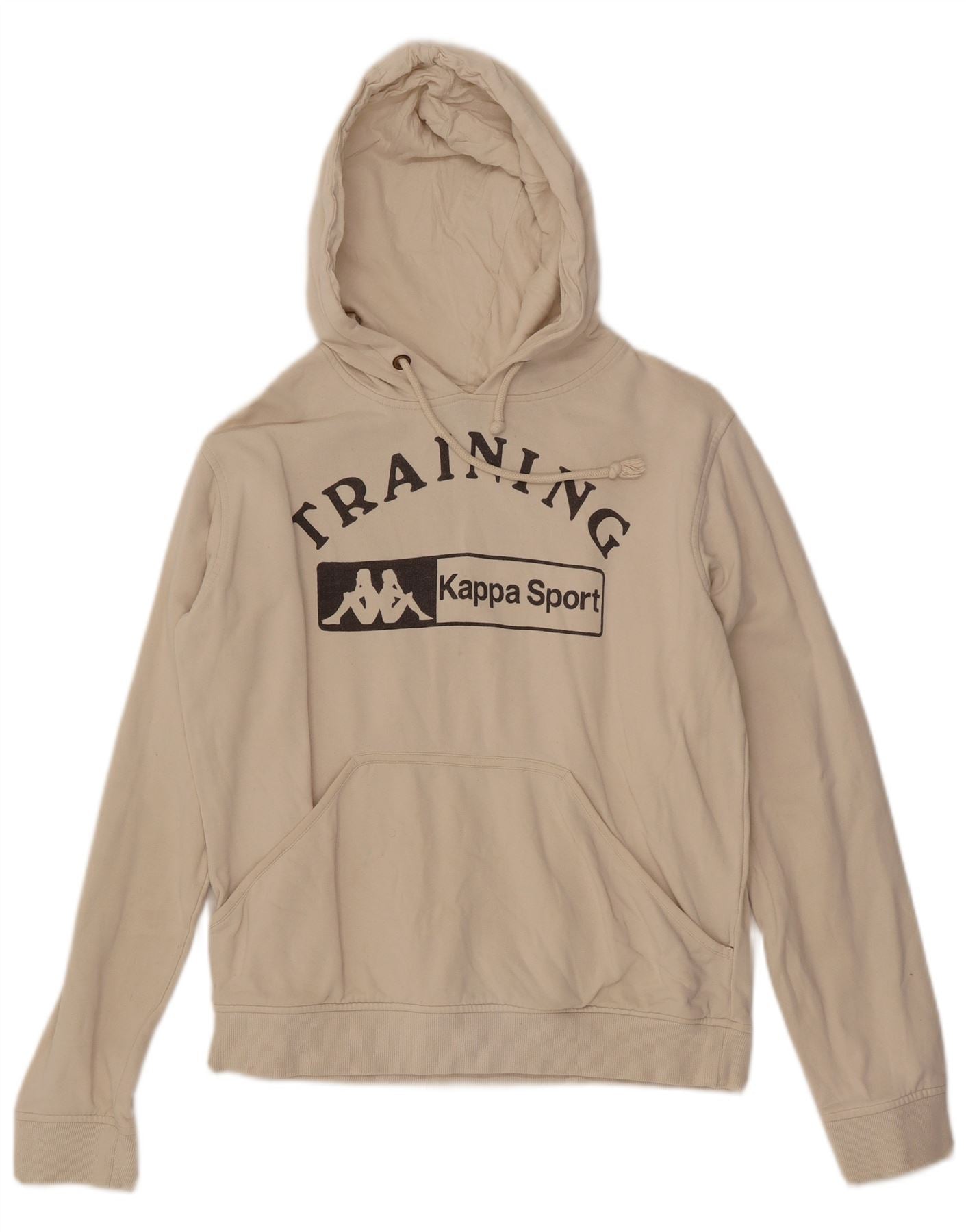 Felpa con cappuccio grafica da allenamento KAPPA da donna UK 14 cotone bianco sporco medio