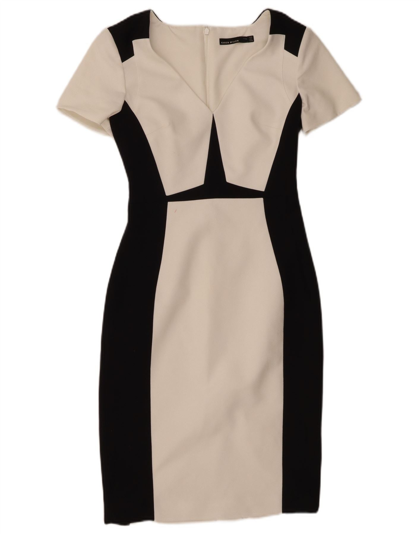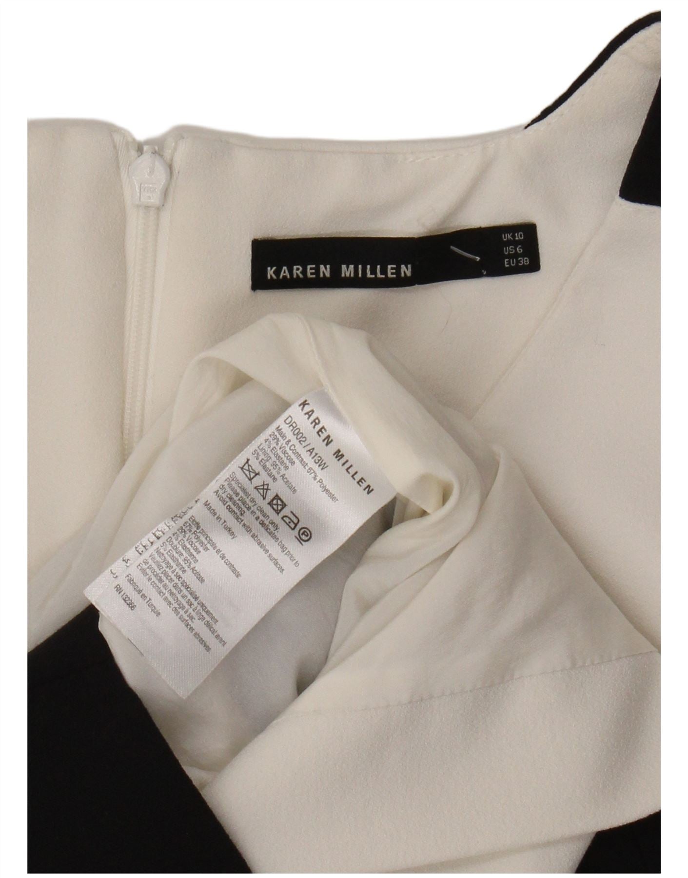 KAREN MILLEN Womens Bodycon Dress UK 10 Small White Colourblock Polyester